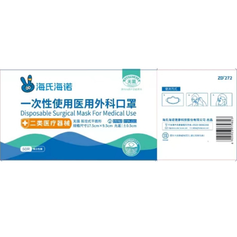 • (원본 A272 업데이트) ZD+272 일회용 의료용 수술용 마스크(블루 독립)(멸균) 17.5×9.5cm
