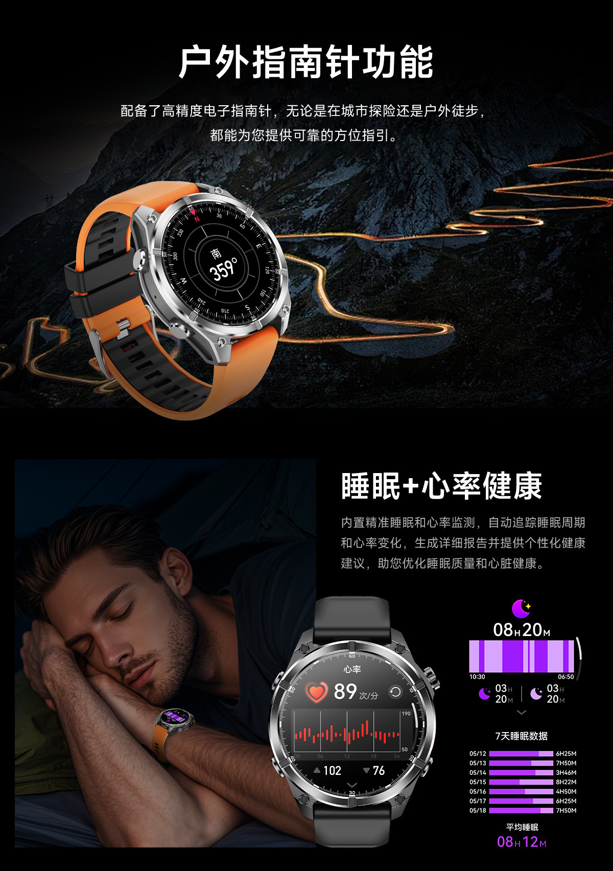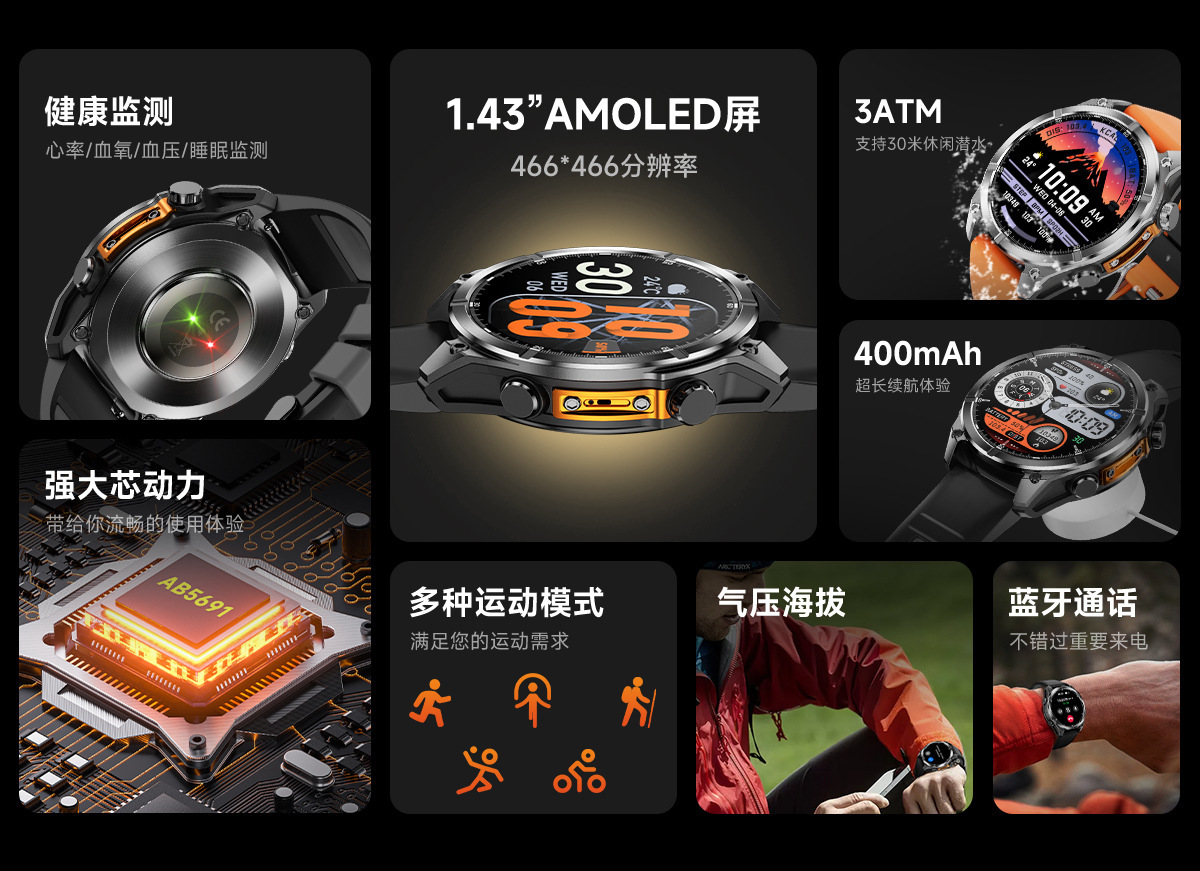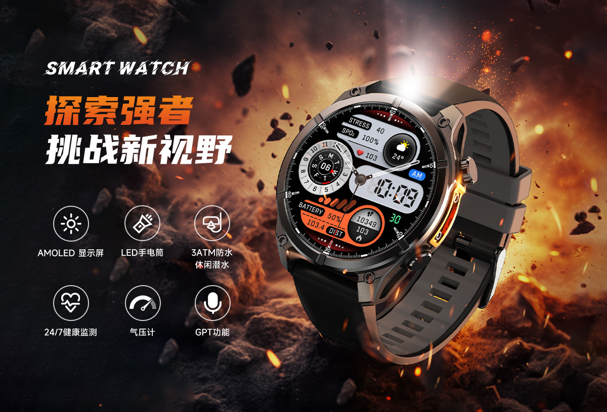 2025 대외 무역 HD300 스포츠 블루투스 스마트 시계 야외 LED 손전등 GPT 방수 기압계 시계스토어 가기