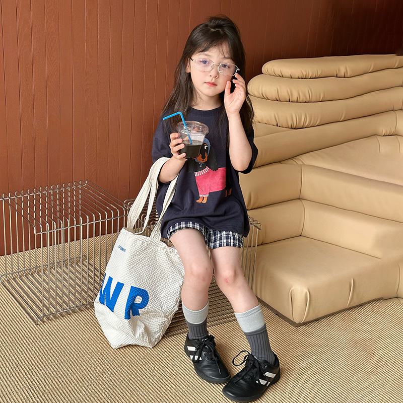 Elmo Beibei 어린이 귀여운 만화 닥스훈트 티셔츠 여름 소녀 아기 스타일 캐주얼 한국 스타일 반팔 탑