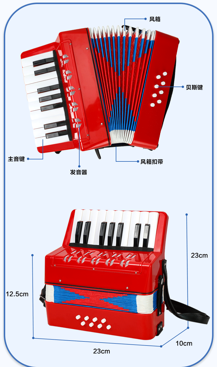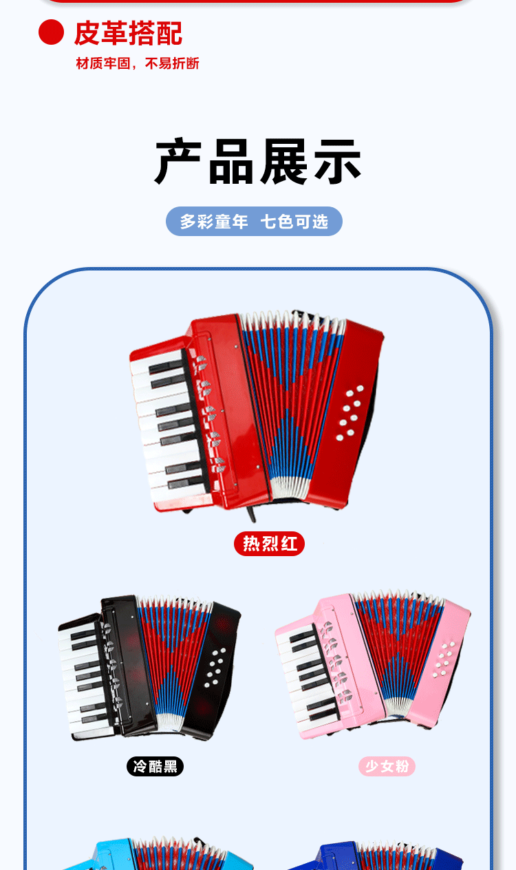공장 직접 판매 17키 아코디언 어린이 악기 취미 훈련 스트랩이 있는 재생 가능한 아코디언 장난감스토어 가기