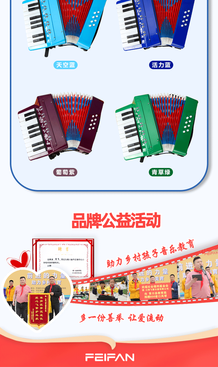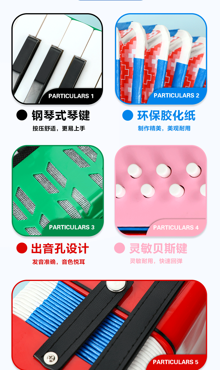 공장 직접 판매 17키 아코디언 어린이 악기 취미 훈련 스트랩이 있는 재생 가능한 아코디언 장난감