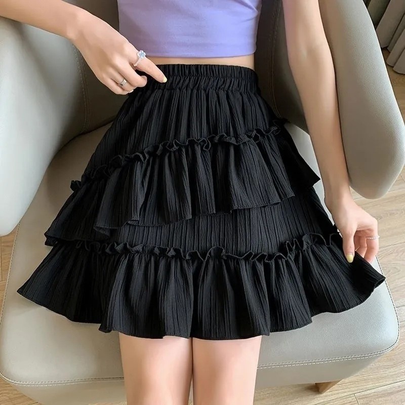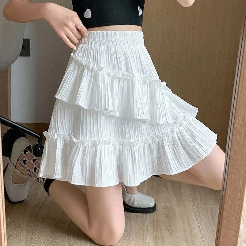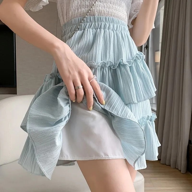 2025년 여름 여성을 위한 쉬폰 스커트, 몸집이 작은 핫걸을 위한 힙 커버 기질, 불규칙한 케이크 스커트, 짧은 스커트스토어 가기