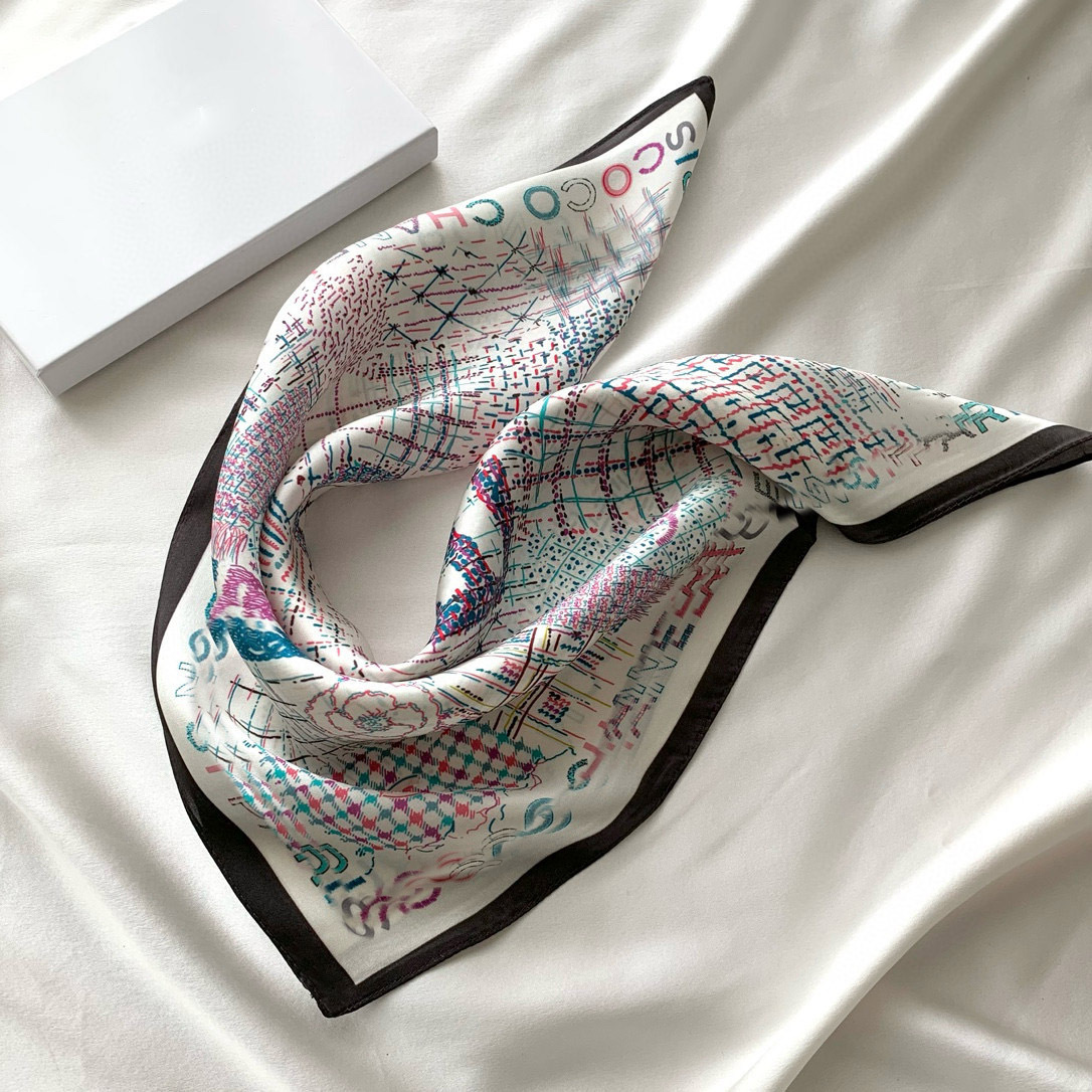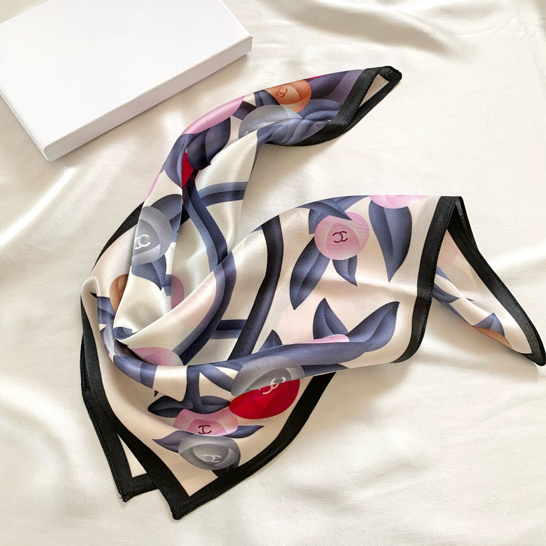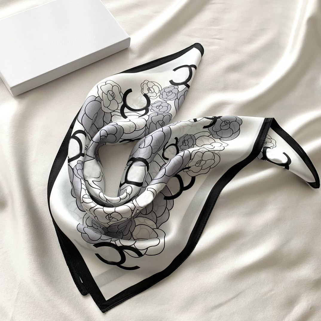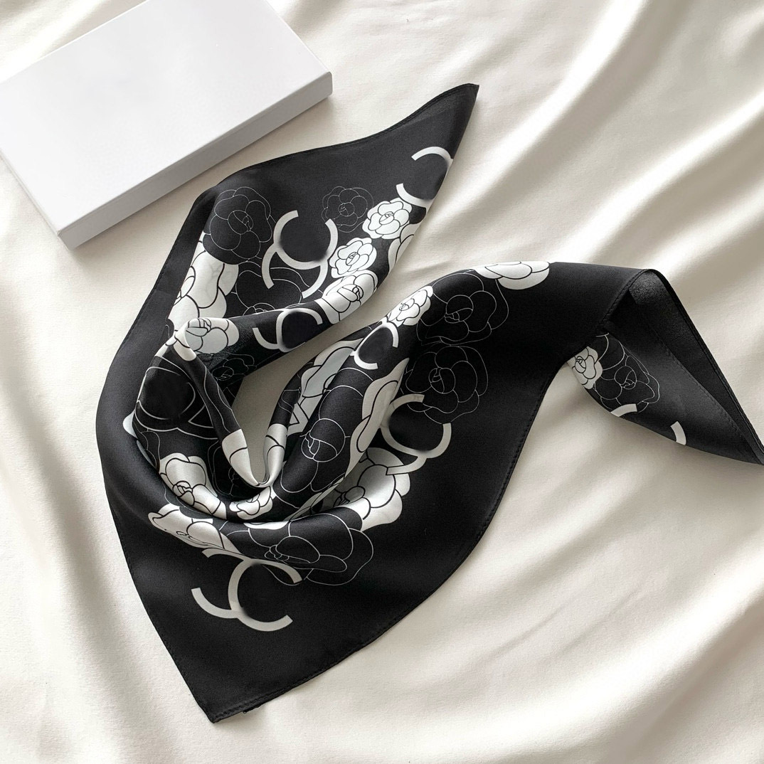 法式山茶花小香风丝巾,百搭小领巾发带头巾,送礼外贸