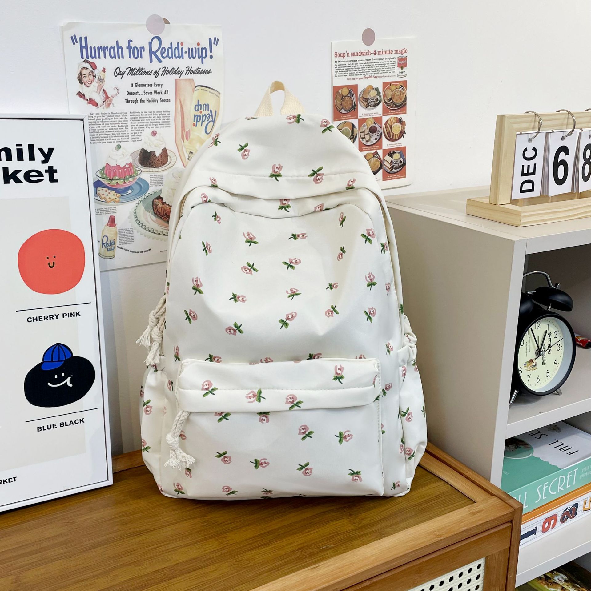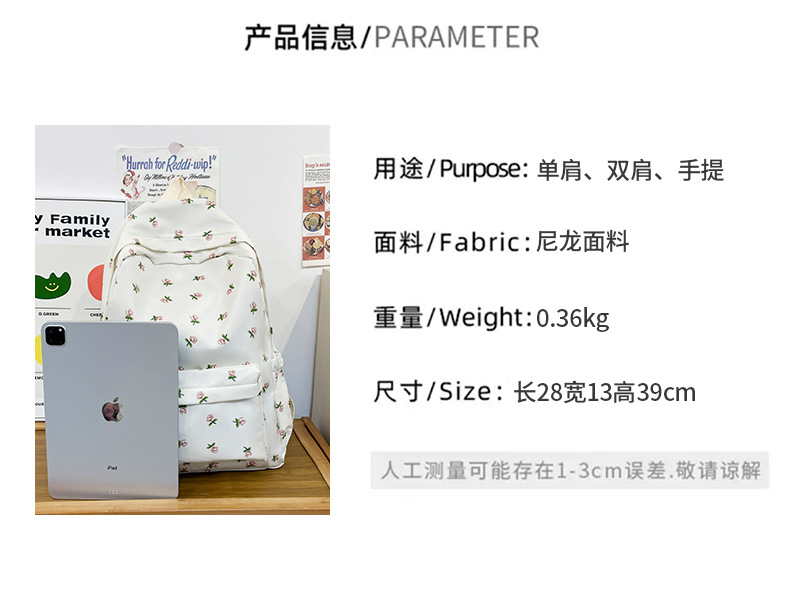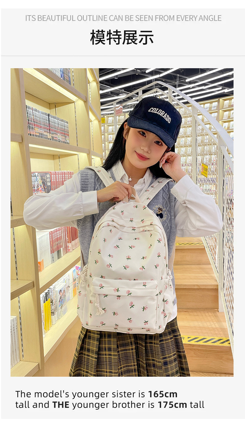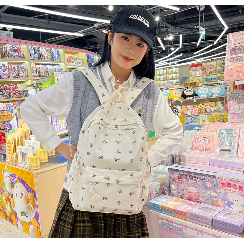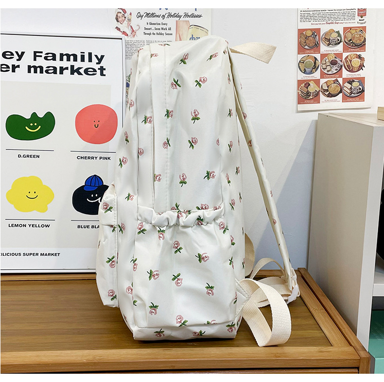 일본식 인스 스타일 꽃무늬 배낭 여성용 고급스러운 작은 신선한 부드러운 소녀 캐주얼 배낭 중학생 학교 가방 유행스토어 가기