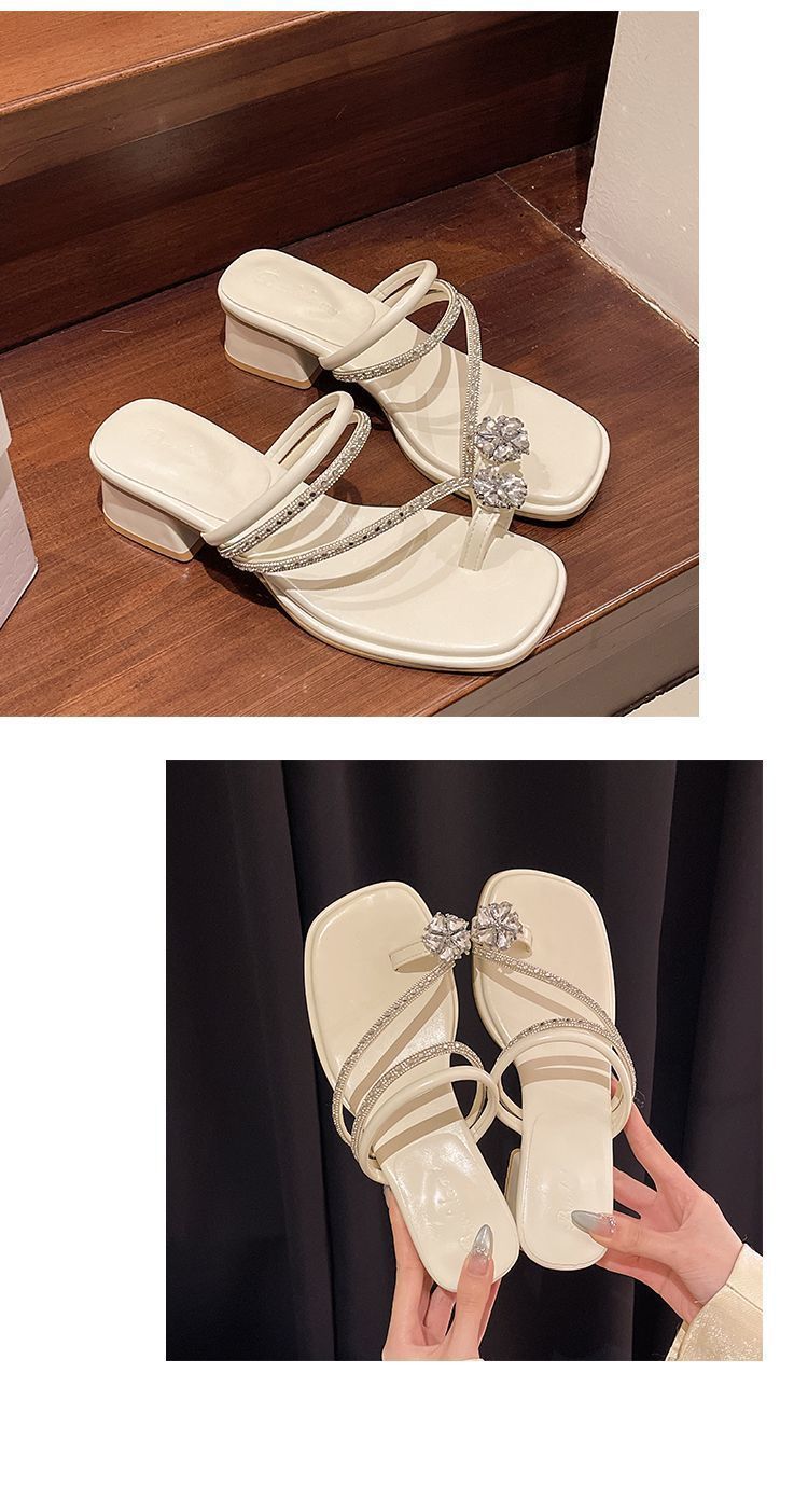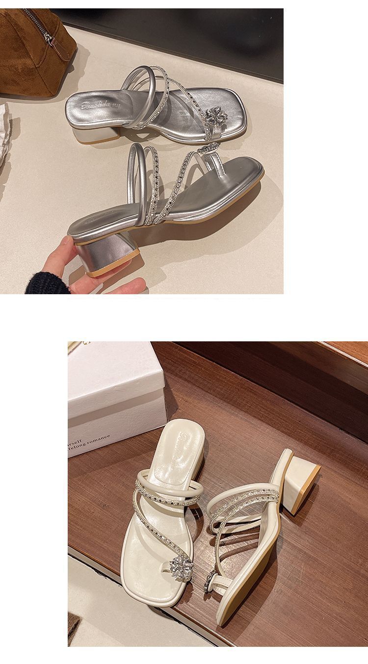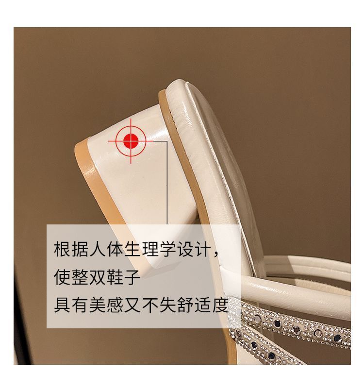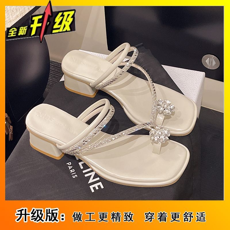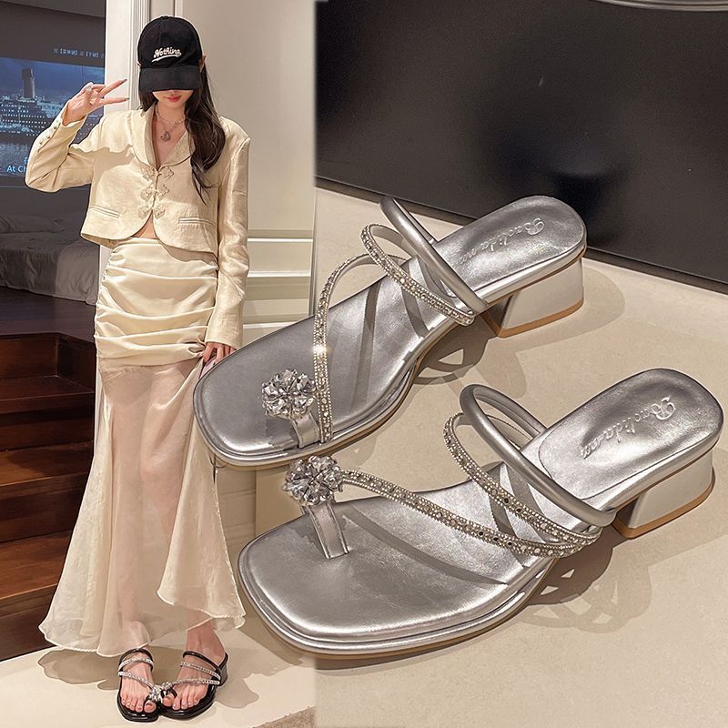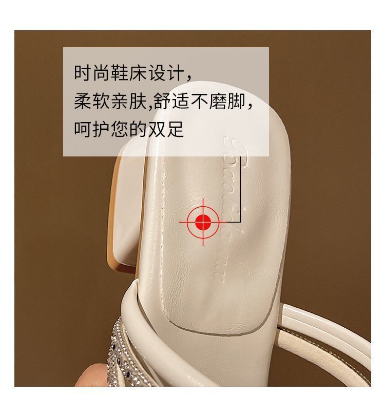 여름 아우터용 라인스톤 두꺼운 굽 샌들 2025 새로운 패션 요정 스타일 스커트 포함 여성용 미드힐 아름다운 슬리퍼스토어 가기