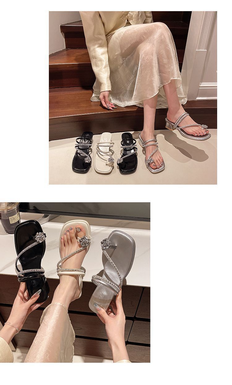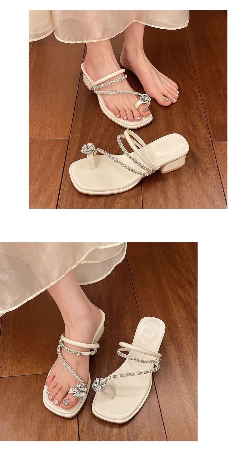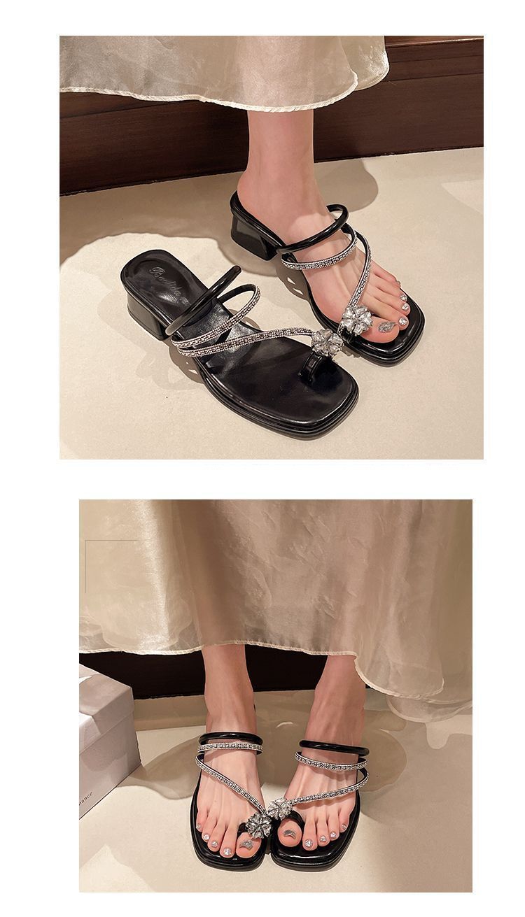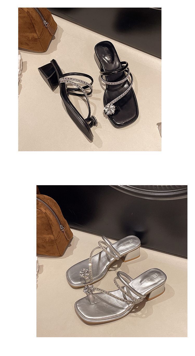 여름 아우터용 라인스톤 두꺼운 굽 샌들 2025 새로운 패션 요정 스타일 스커트 포함 여성용 미드힐 아름다운 슬리퍼스토어 가기