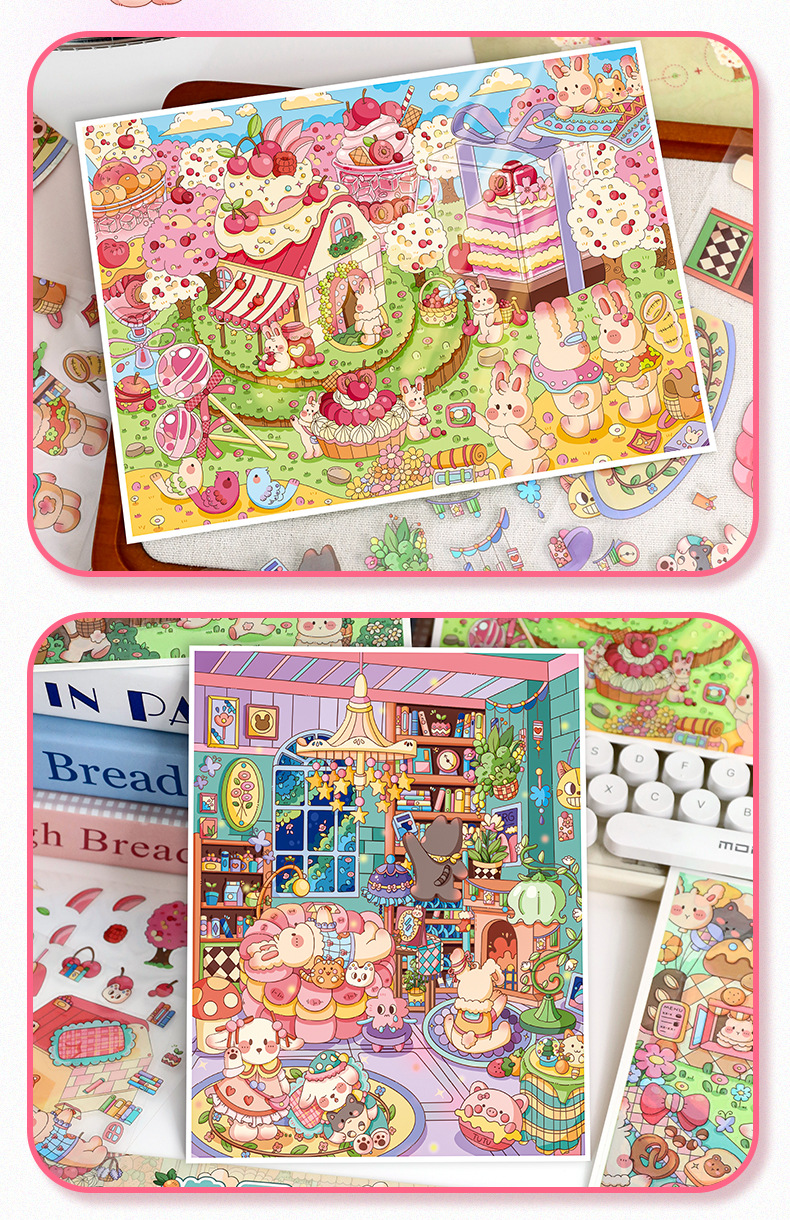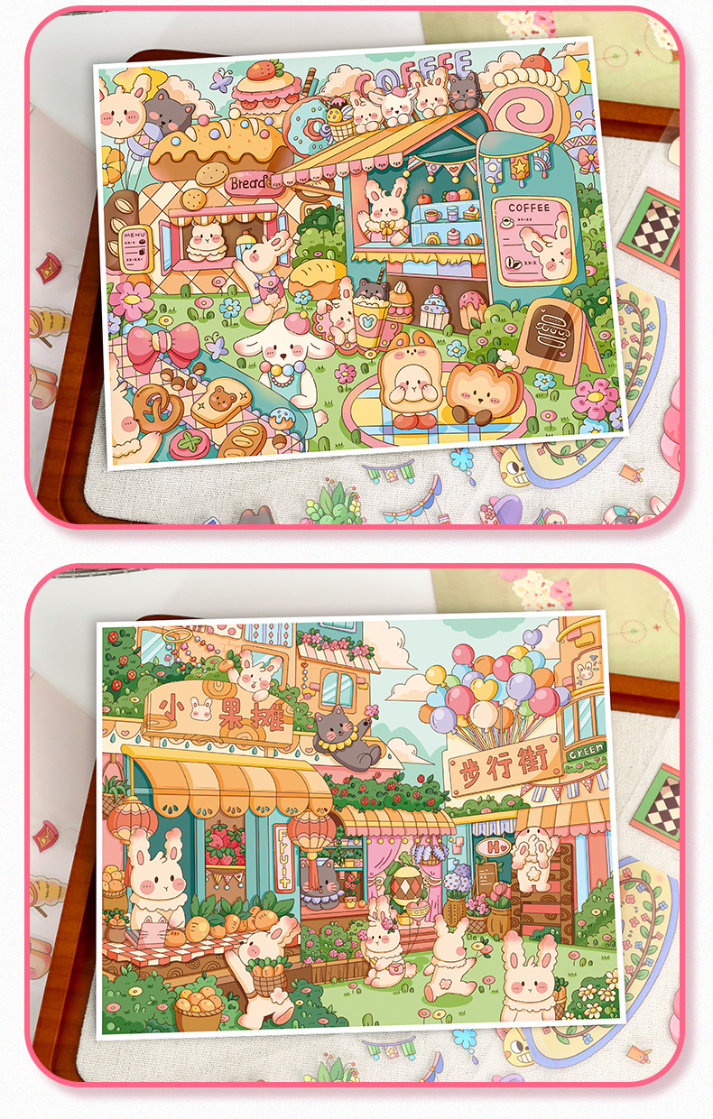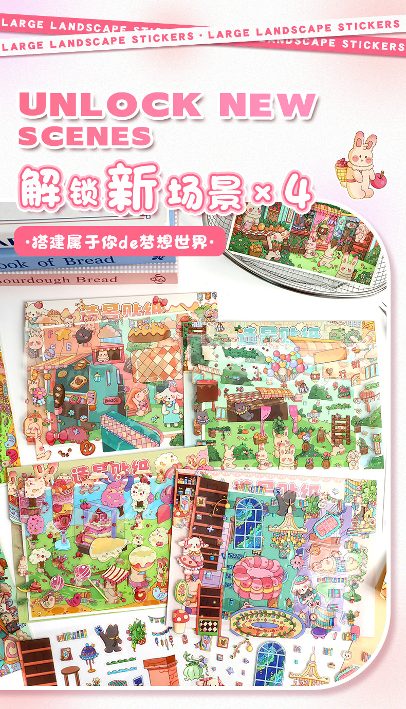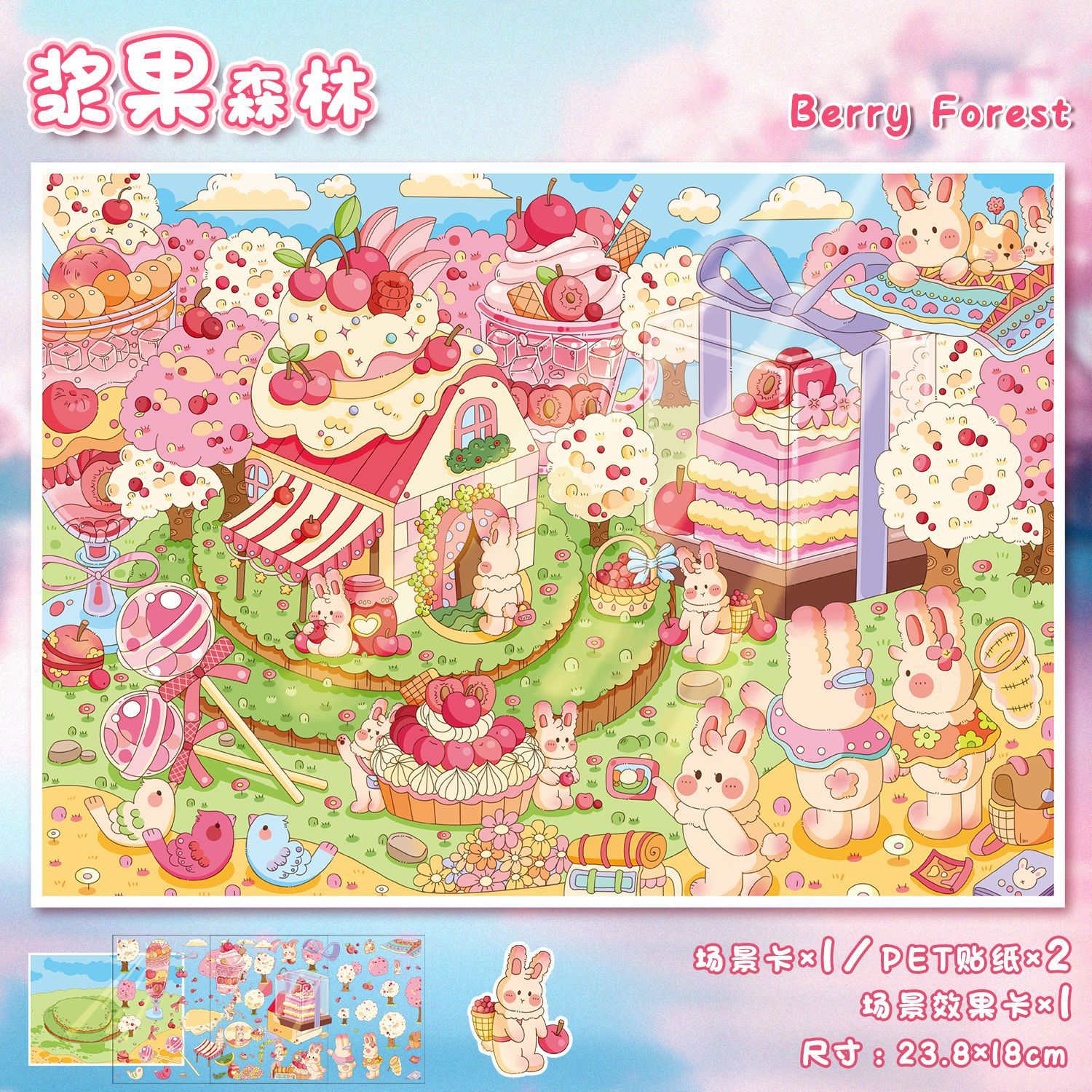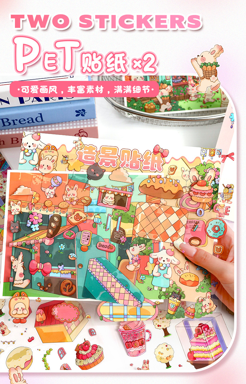 65.0 예술적 파란색 조경 스티커 귀여운 엽서 장면 스티커 만화 3D 입체 콜라주 스티커 diy 핸드북스토어 가기