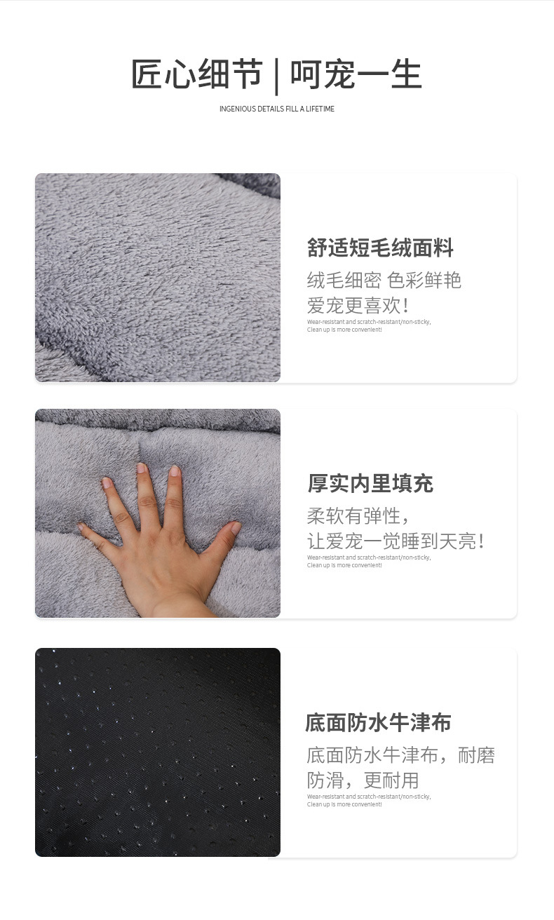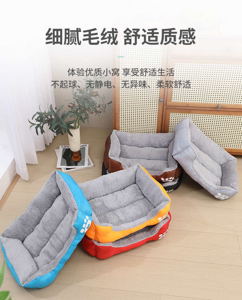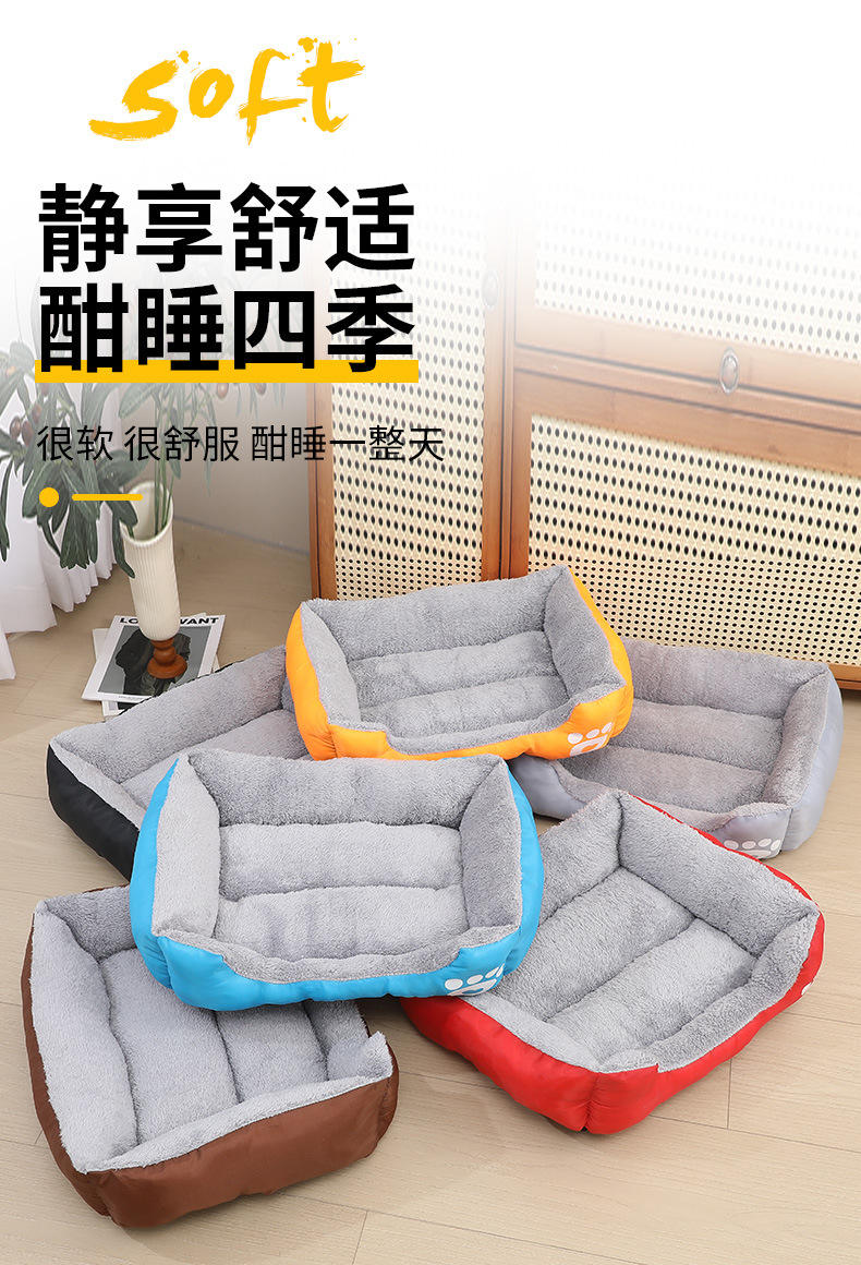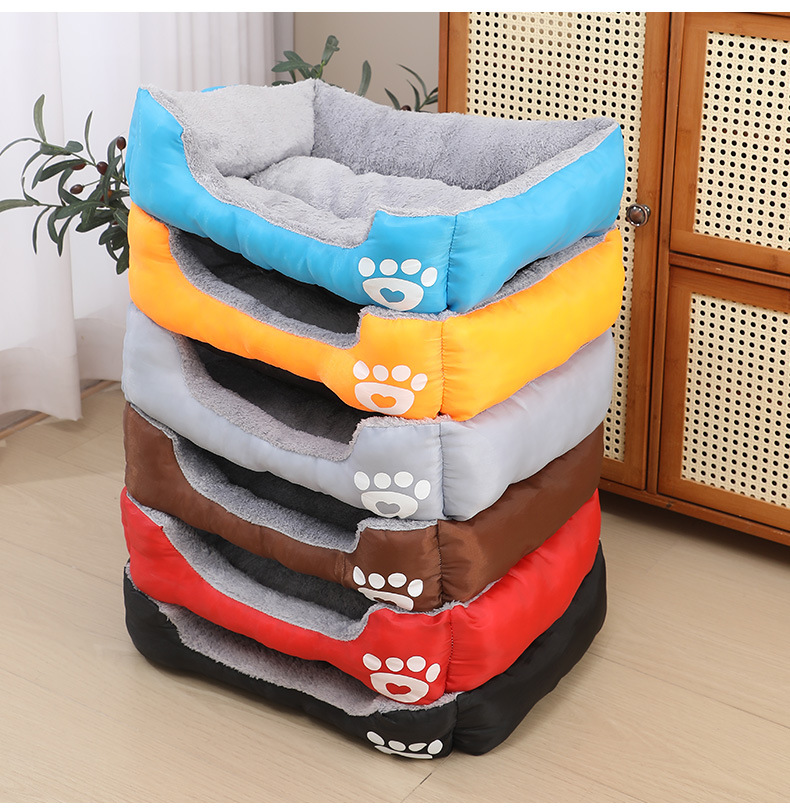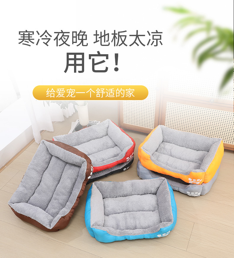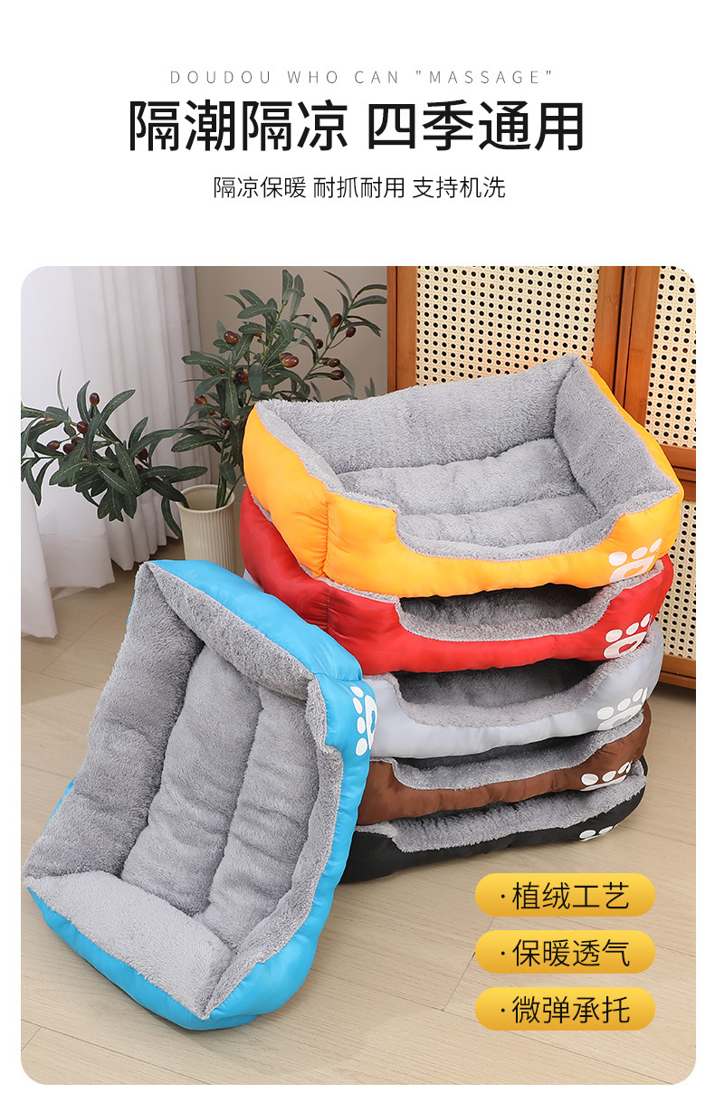 사계절용 애완견 침대, 테디 애완동물 침대, 소형, 중형, 대형견용 겨울철 따뜻한 플러시 사각형 애완동물 침대스토어 가기