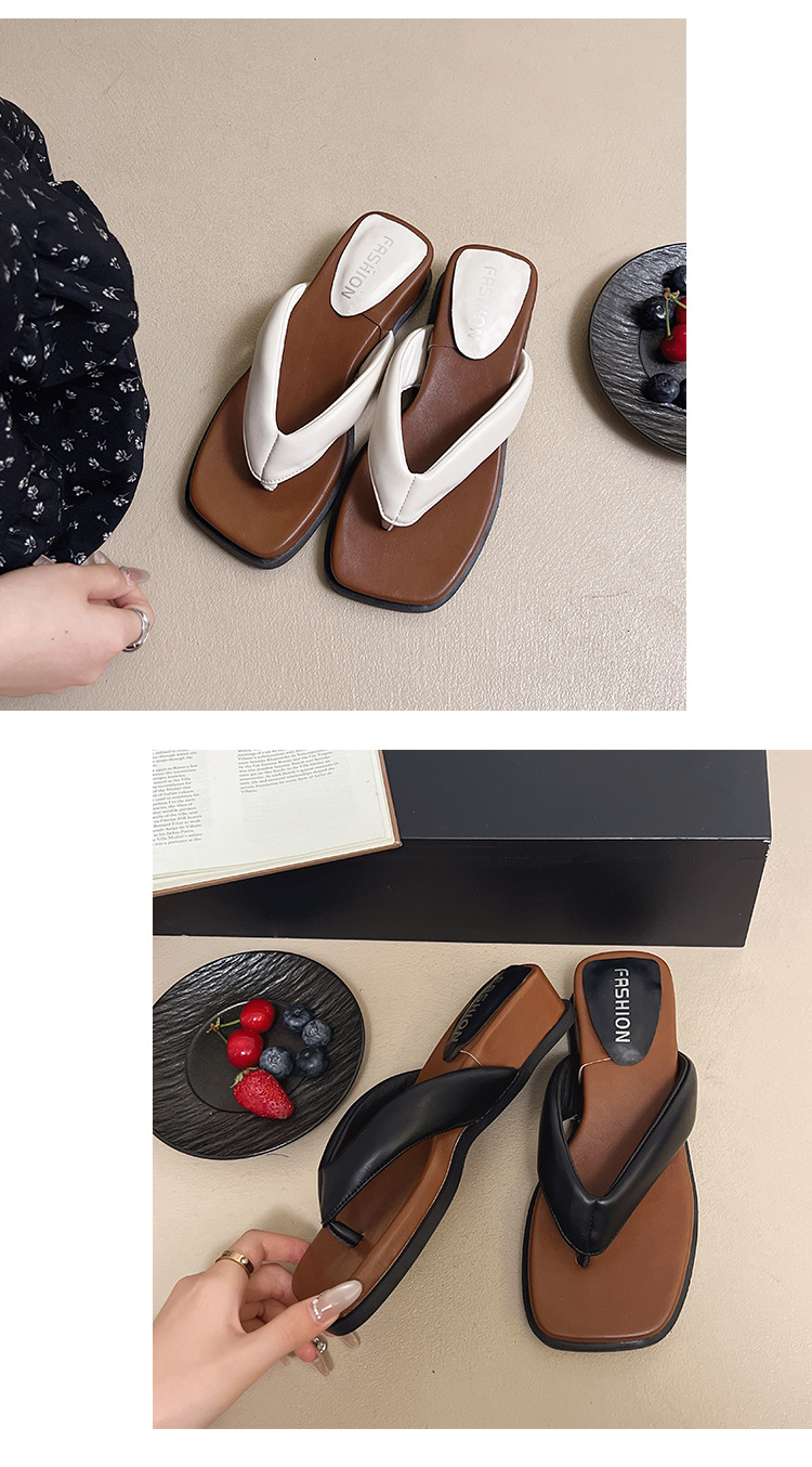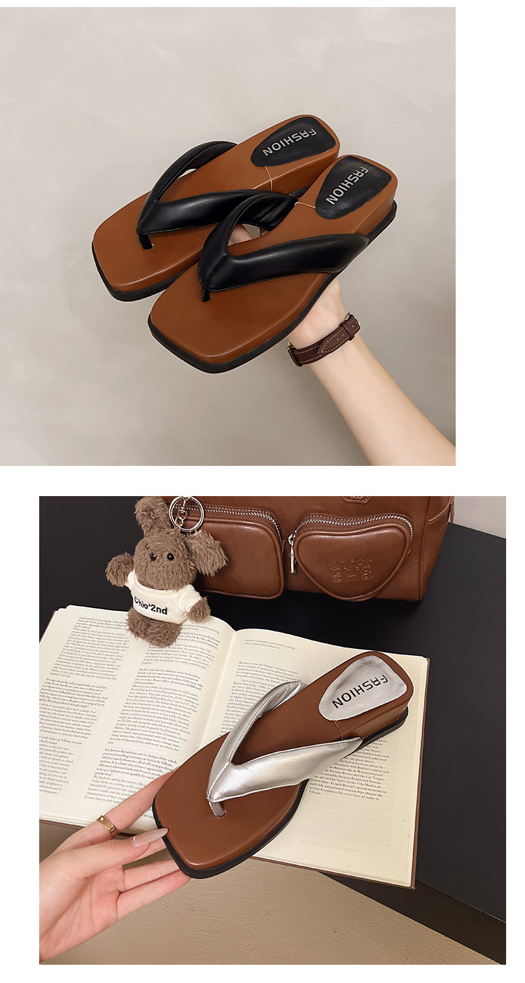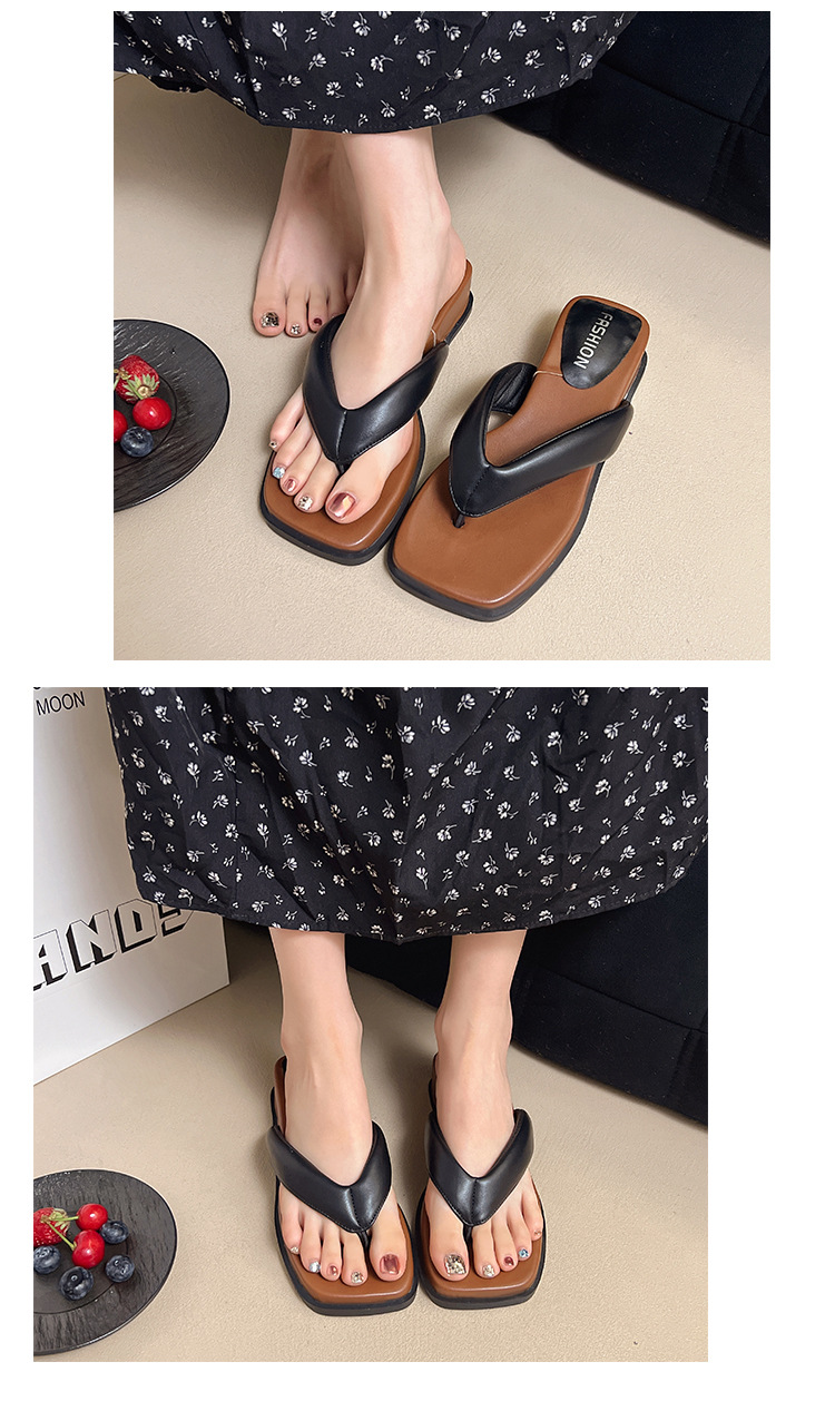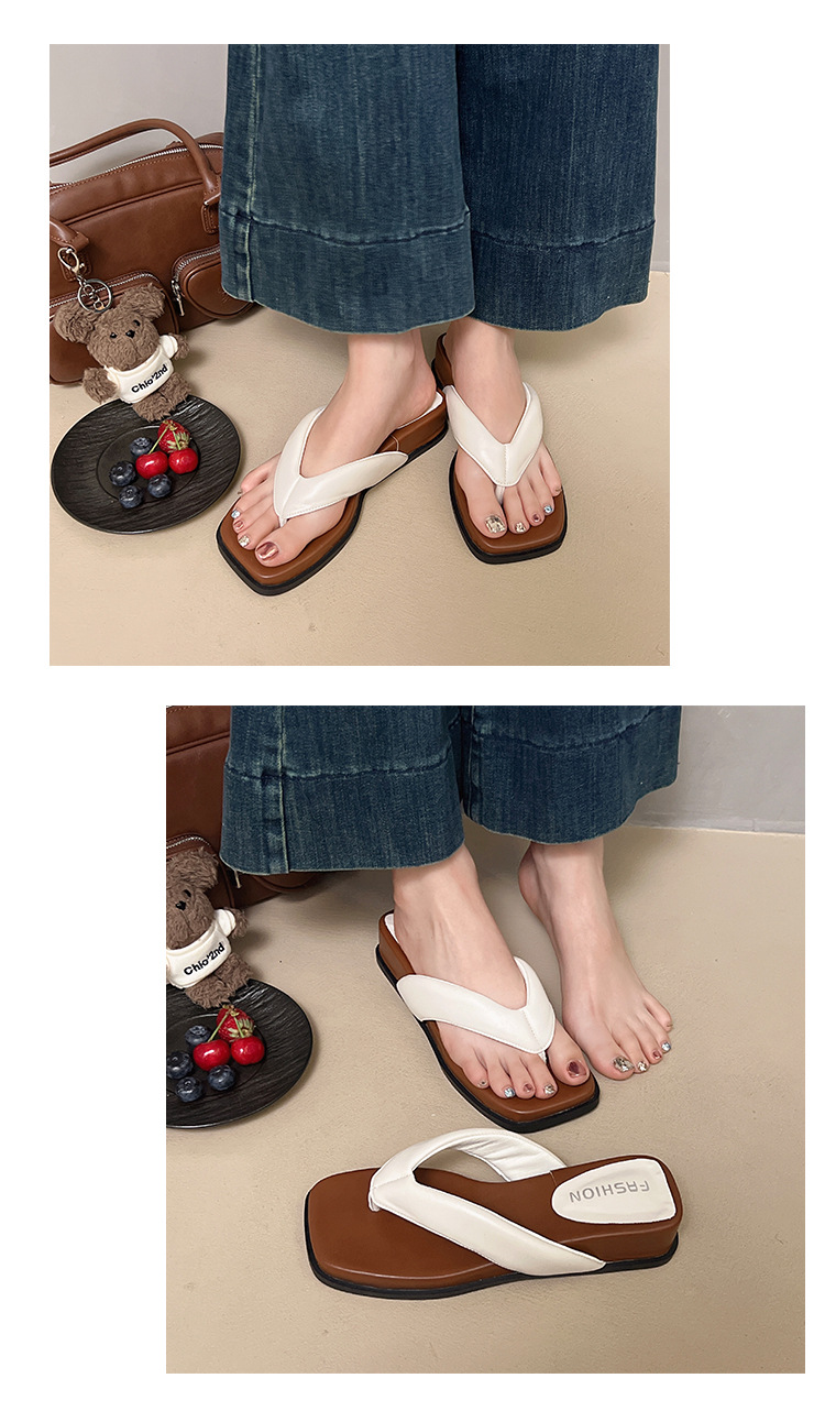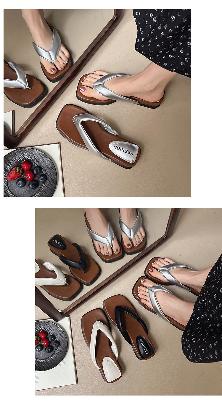 여름 야외 착용을위한 해변 휴가 해변 미끄럼 방지 플립 플롭 여성 2025 새로운 프랑스 복고풍 스퀘어 토 플립 플롭