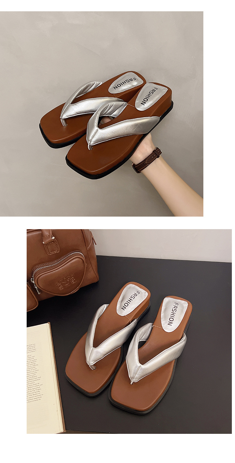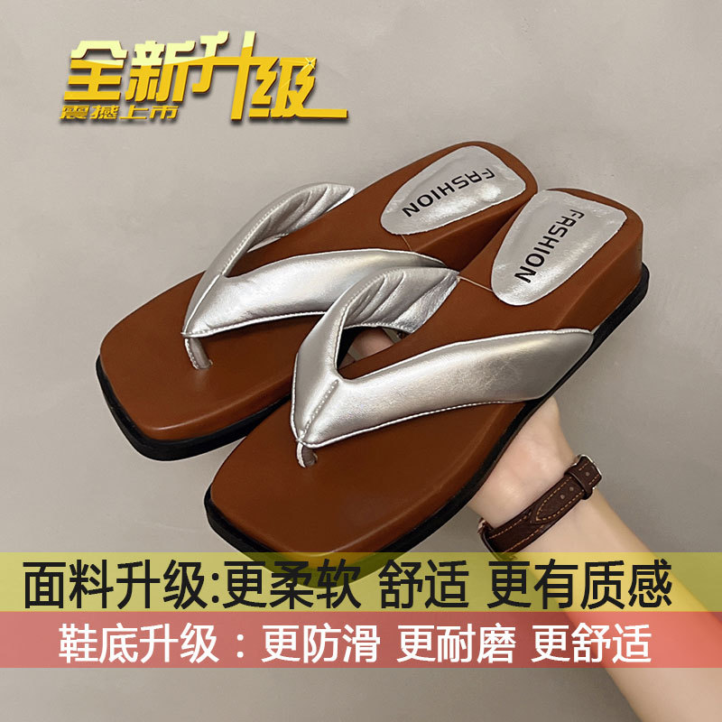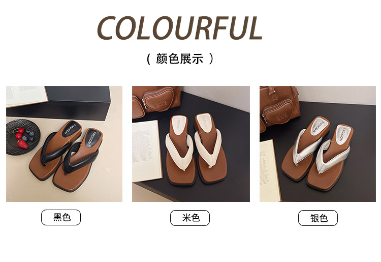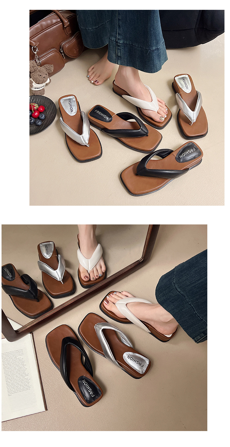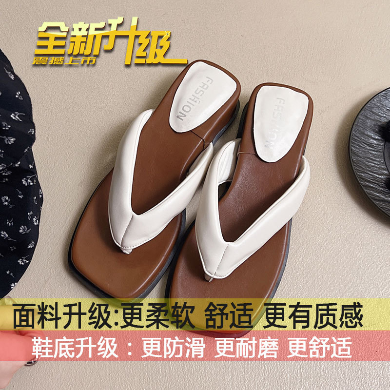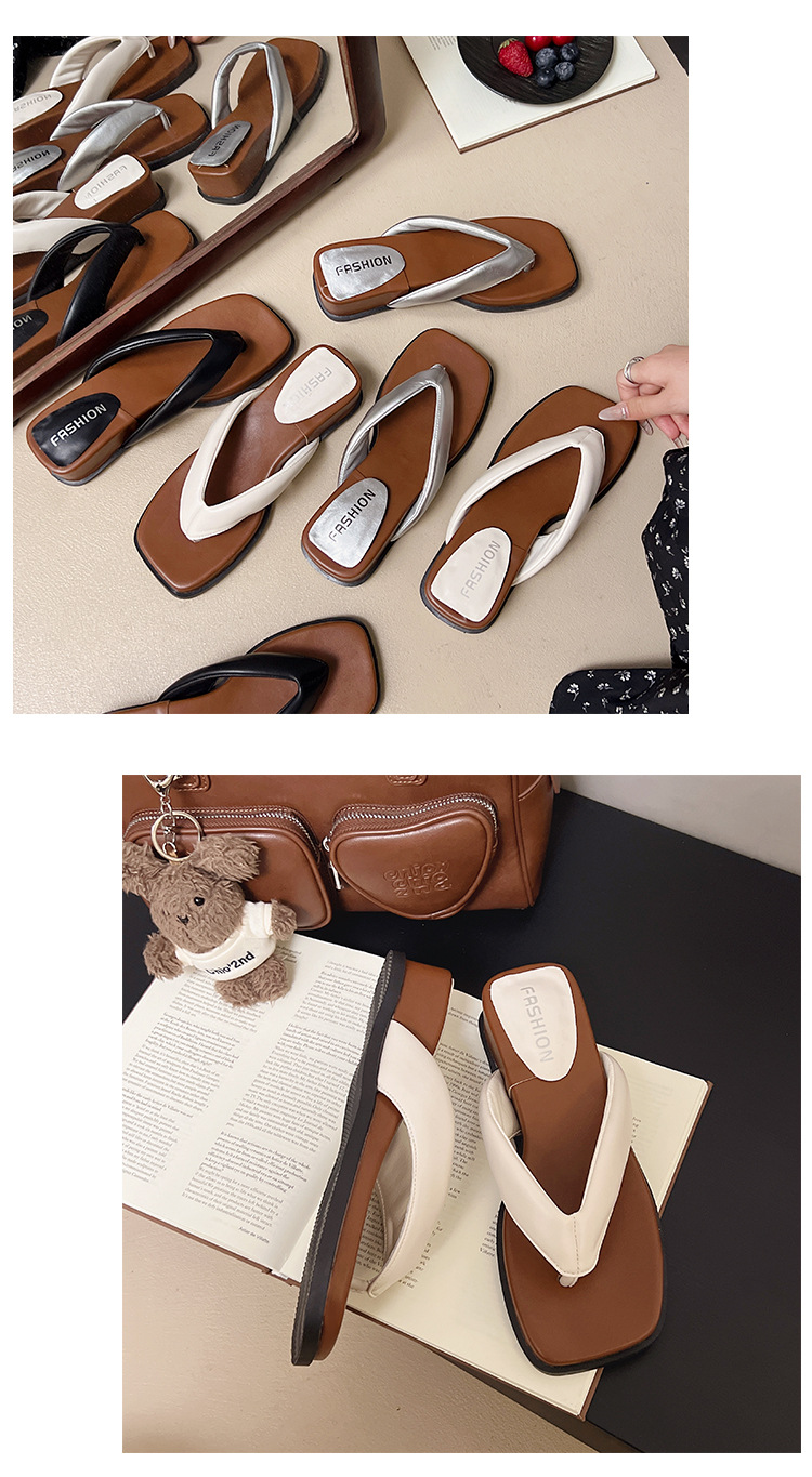 여름 야외 착용을위한 해변 휴가 해변 미끄럼 방지 플립 플롭 여성 2025 새로운 프랑스 복고풍 스퀘어 토 플립 플롭
