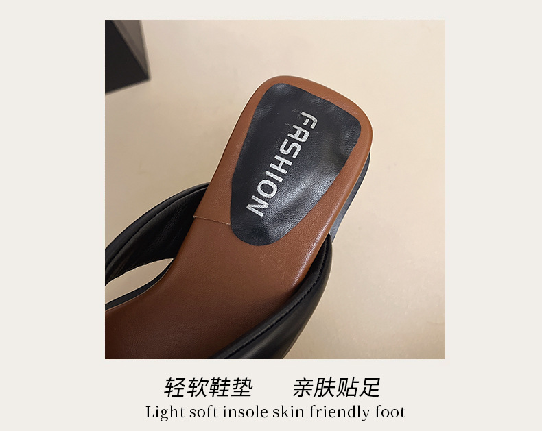 여름 야외 착용을위한 해변 휴가 해변 미끄럼 방지 플립 플롭 여성 2025 새로운 프랑스 복고풍 스퀘어 토 플립 플롭스토어 가기