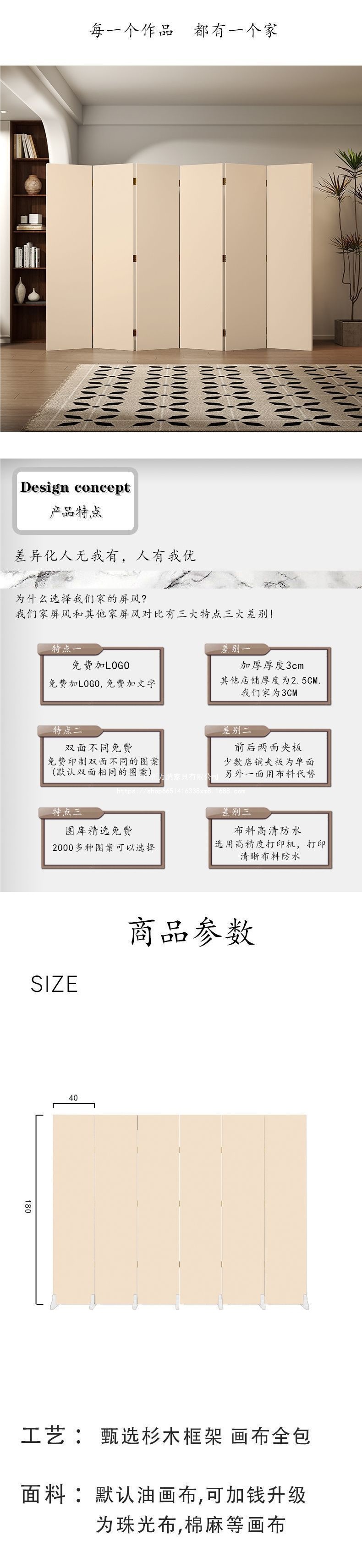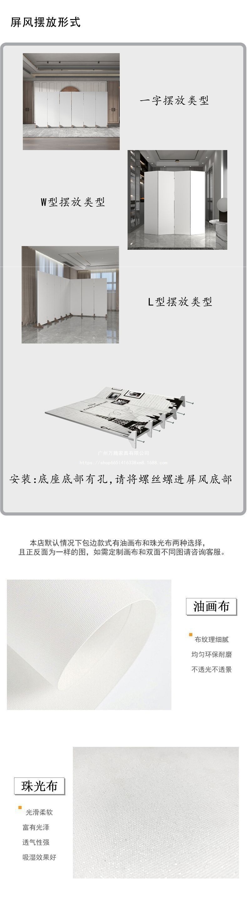 WanTeng 크림 스타일 스크린 파티션 거실 현대적인 미니멀리스트 침실 룸 입구 차단 이동식 접이식 WanTeng