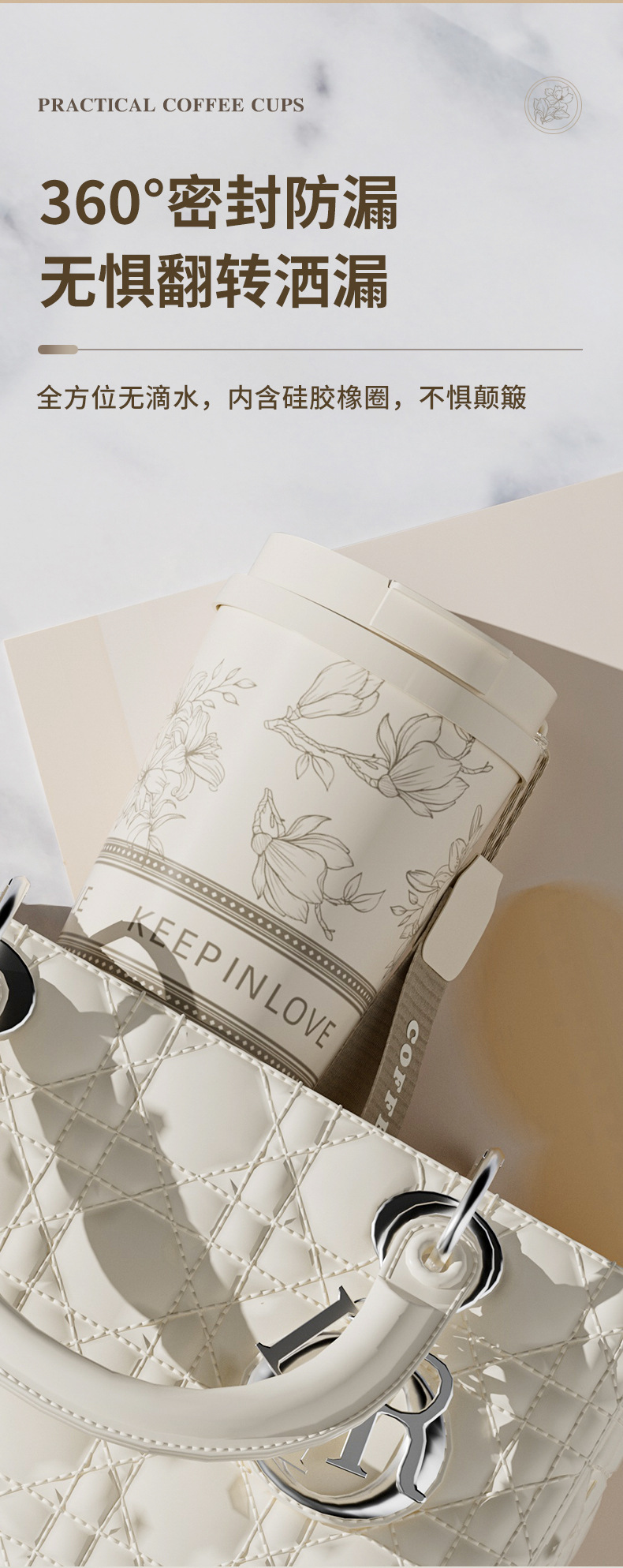 세라믹 내부 레이어 은방울꽃 커피컵 고급스러운 316 스테인리스 보온컵 빨대 선물 맞춤형 물컵