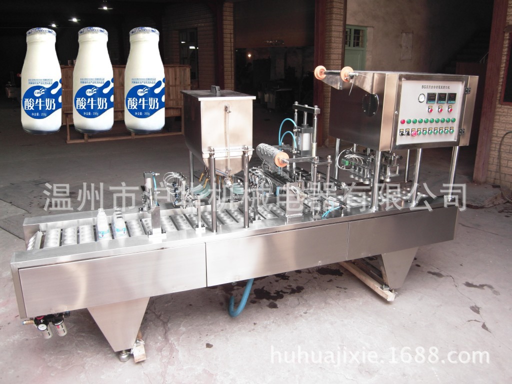 温州沪华机械生产的乳酸菌果汁饮料瓶装铝箔全自动灌装封口机沪华封口设计的包装设备。具有操作简便,性能稳定,易于维护保养.既可以单机使用,也可接入生产流水线使用于饮料,酸奶,牛奶等包装。