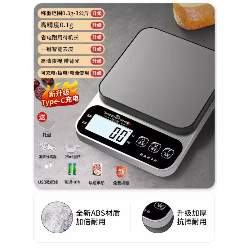 • [업그레이드 및 두꺼워짐] Type-C 고속 충전 모델 3kg/0.1g (무료 트레이 + 4가지 주요 선물)