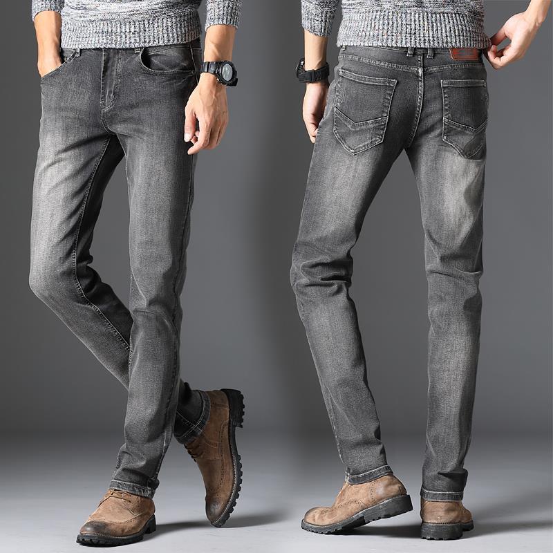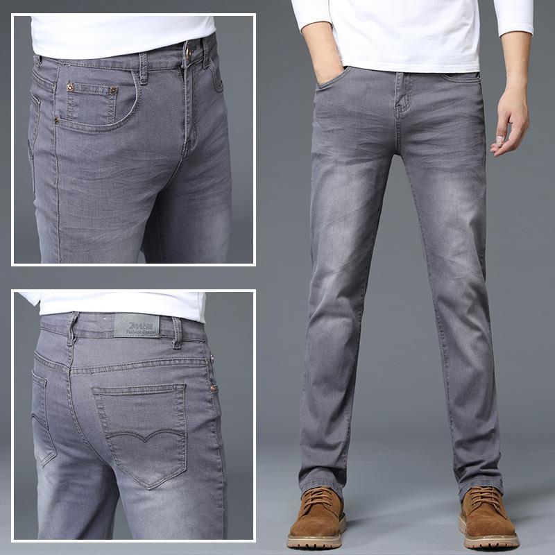 사계절 퓨어 화이트 청바지 남성 비즈니스 스트레이트 스트레치 한국 스타일 심플 루즈 캐주얼 슬림 롱 팬츠스토어 가기