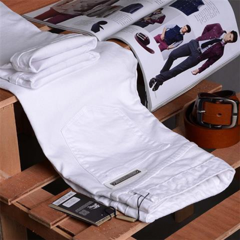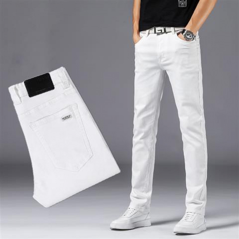 사계절 퓨어 화이트 청바지 남성 비즈니스 스트레이트 스트레치 한국 스타일 심플 루즈 캐주얼 슬림 롱 팬츠