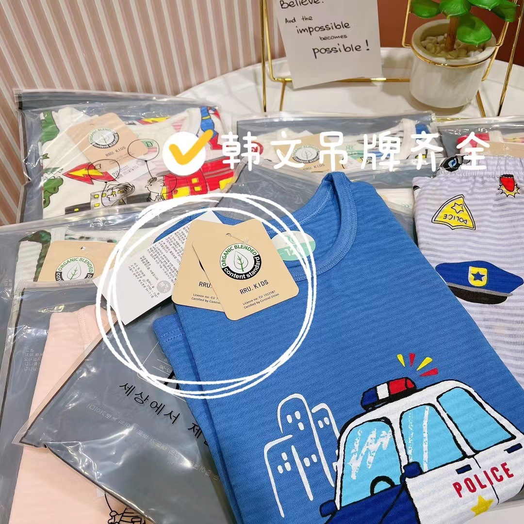 어린이 한국 스타일 작은 공주 에어컨 정장 소년과 소녀 여름 얇은 클래스 A 면화 가정 의류 7부 소매 셔츠스토어 가기