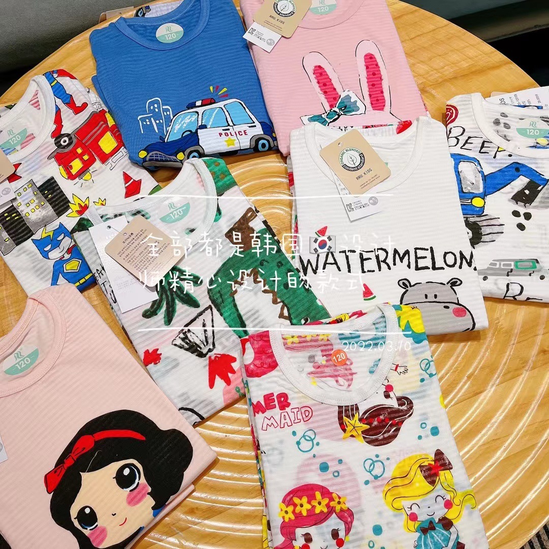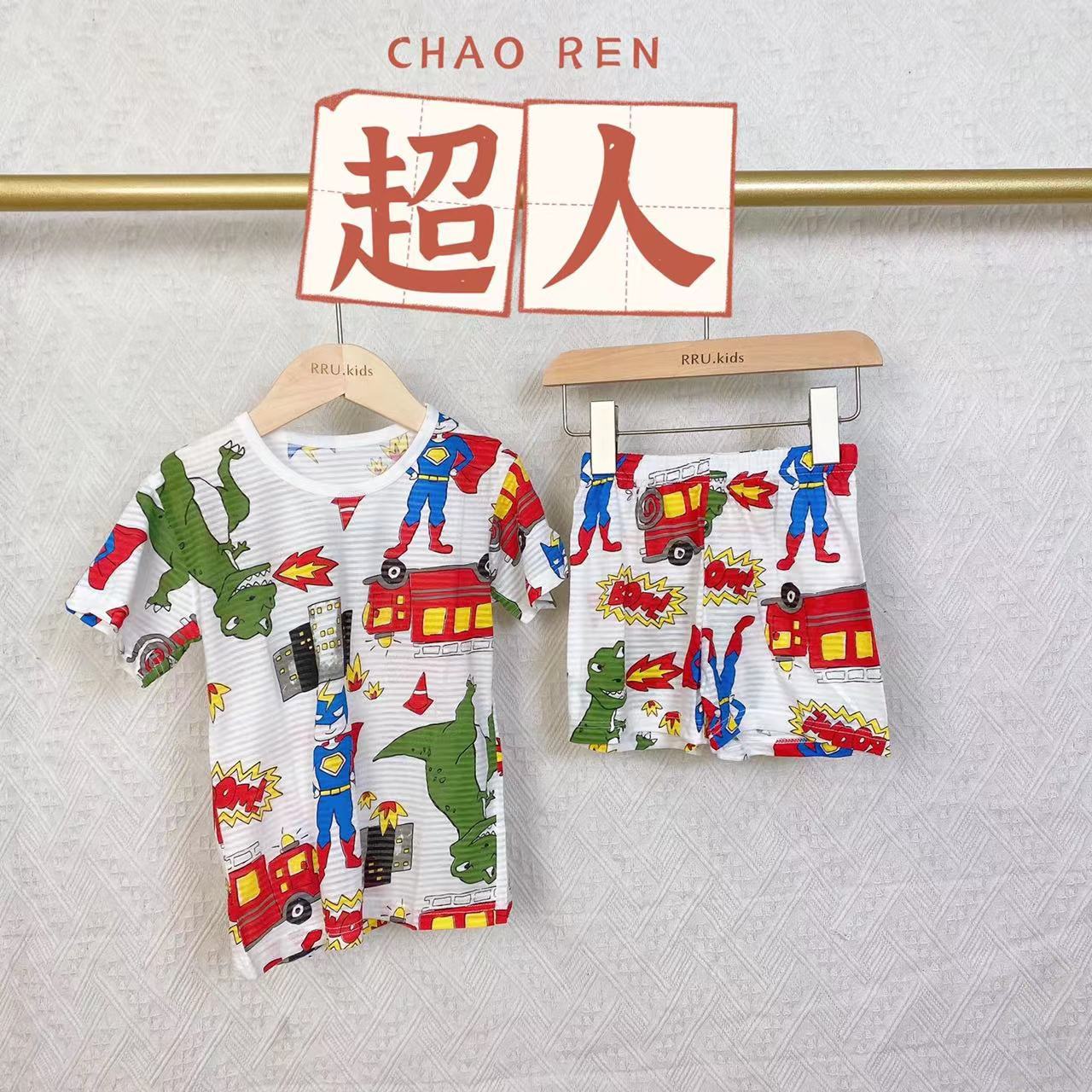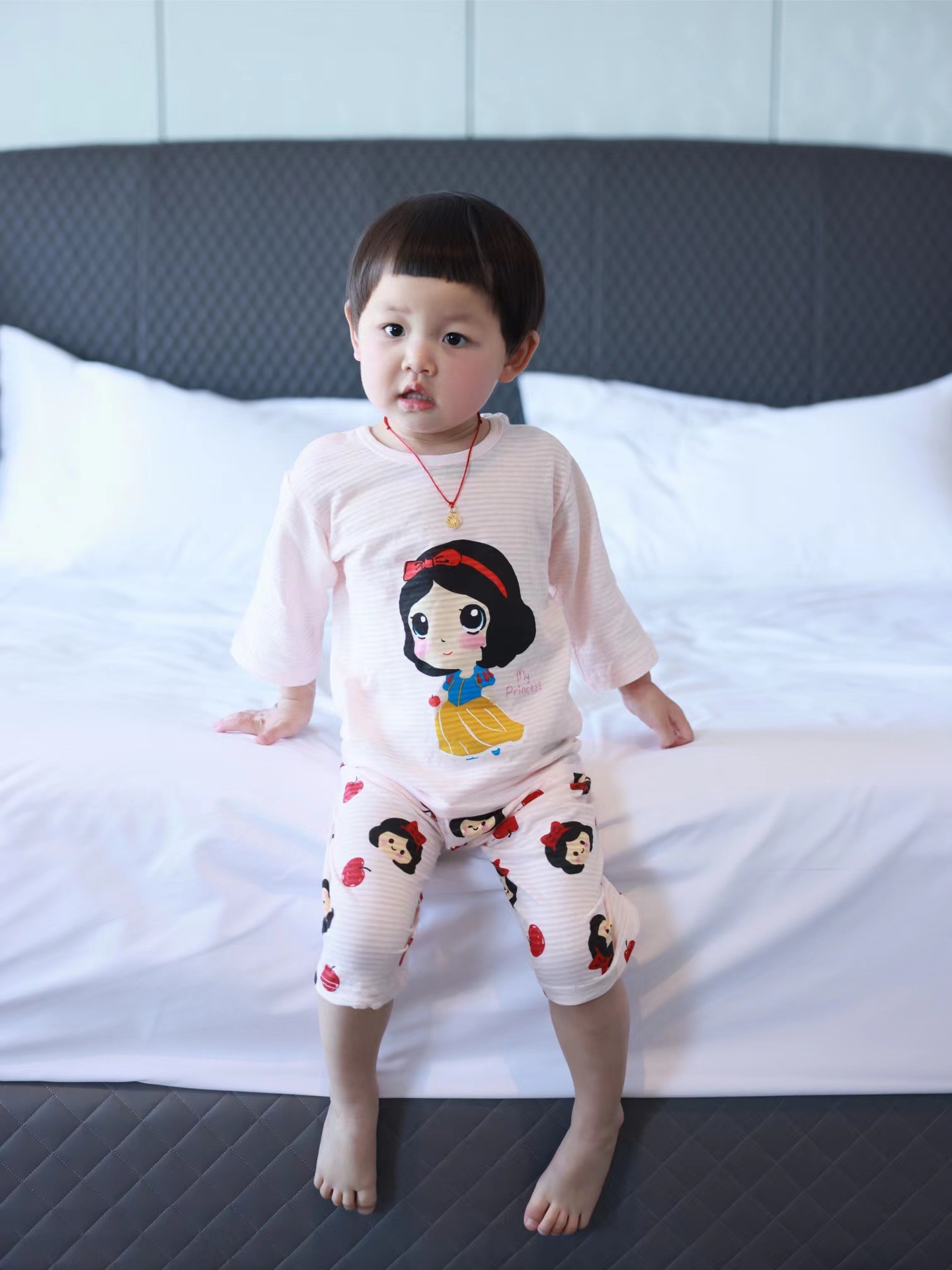 어린이 한국 스타일 작은 공주 에어컨 정장 소년과 소녀 여름 얇은 클래스 A 면화 가정 의류 7부 소매 셔츠