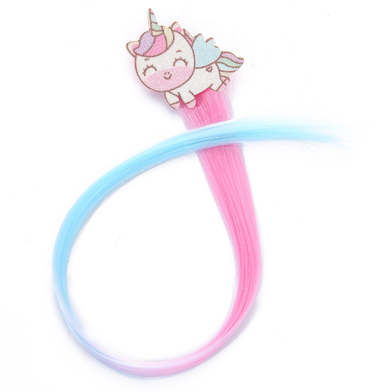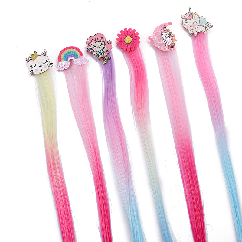 어린이 그라데이션 가발 머리핀 어린이 긴 직선 머리 머리 장식 가발 브레이드 소녀 머리핀 머리 땋은 포니 테일 클립