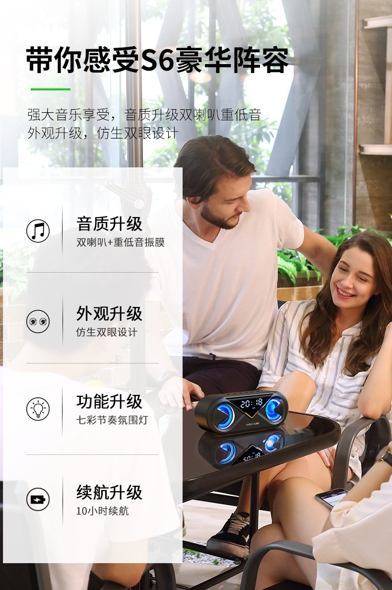 S6 무선 블루투스 스피커 데스크탑 오디오 미니 대용량 서브우퍼 야외 자동차 휴대폰 홈 공급망
