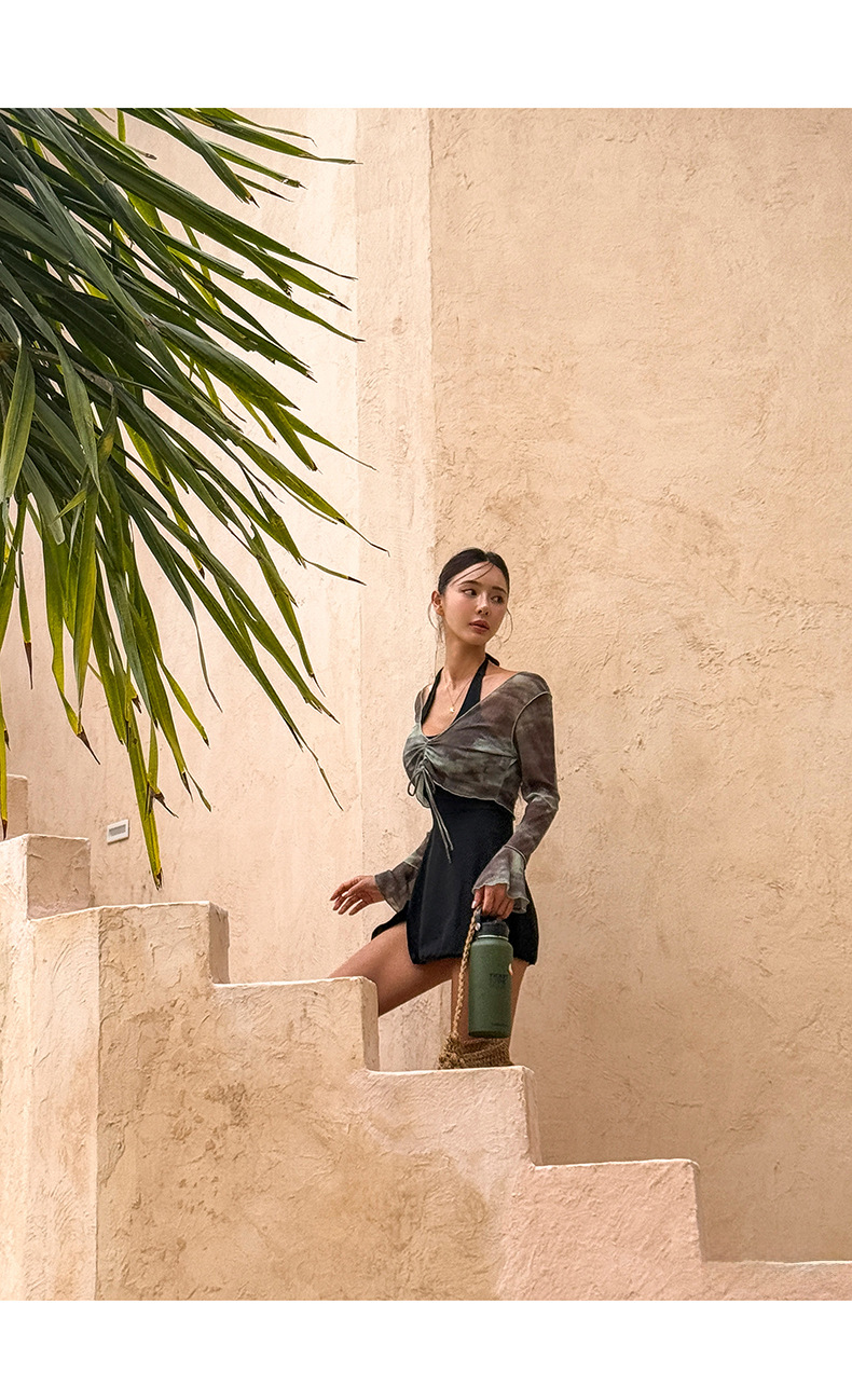여성용 수영복, 스커트 스타일 원피스, 슬리밍, 배 커버, 긴팔 블라우스, 자외선 차단, 작은 가슴 푸쉬업, 고급, 보수적, 휴가, 살짝 뚱뚱함스토어 가기