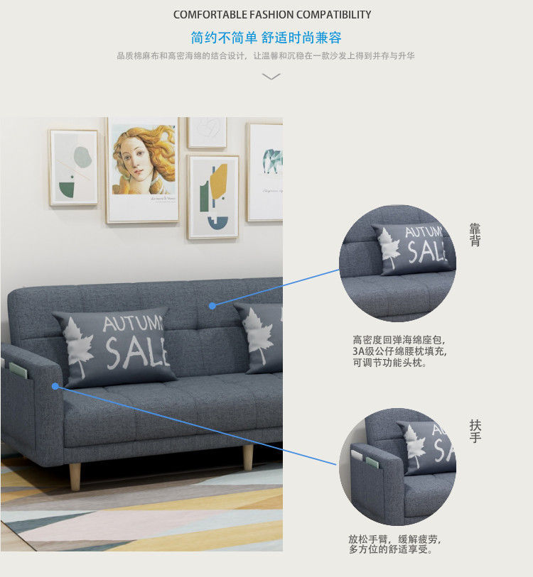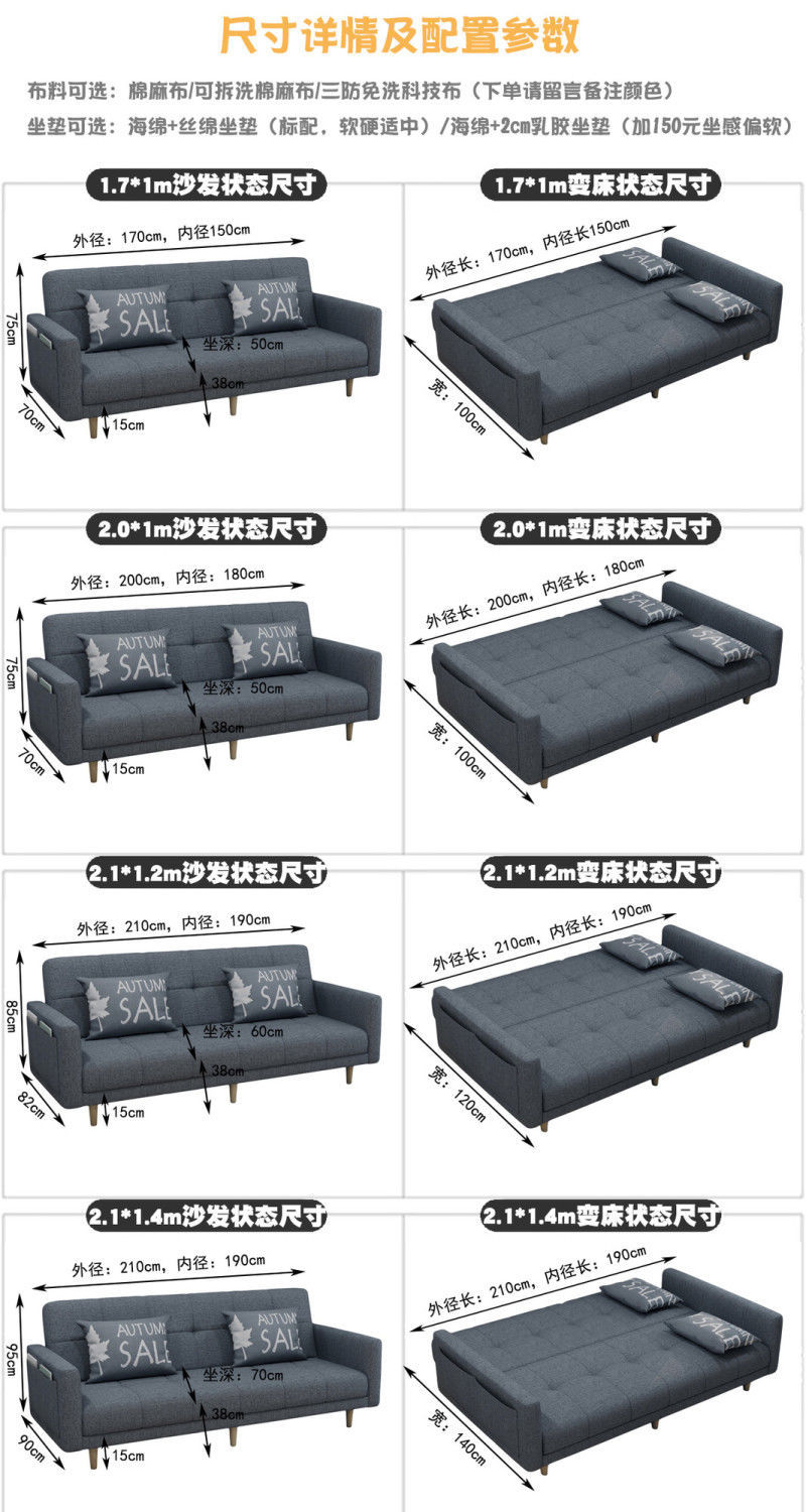소파 베드 새로운 이중 목적 가변 침대 다기능 접이식 확장 작은 아파트 거실 단단한 나무 기술 천 간단한 유형