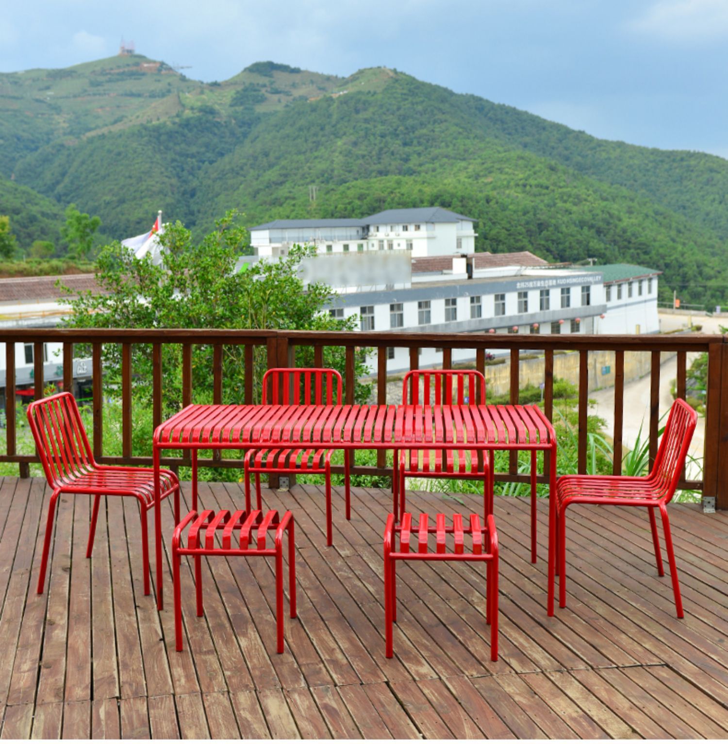 공장 마당 테이블과 의자 인터넷 연예인 레저 테이블과 의자 조합 야외 핑크 철 테이블과 의자 간단한 야외 금속 테이블과 의자