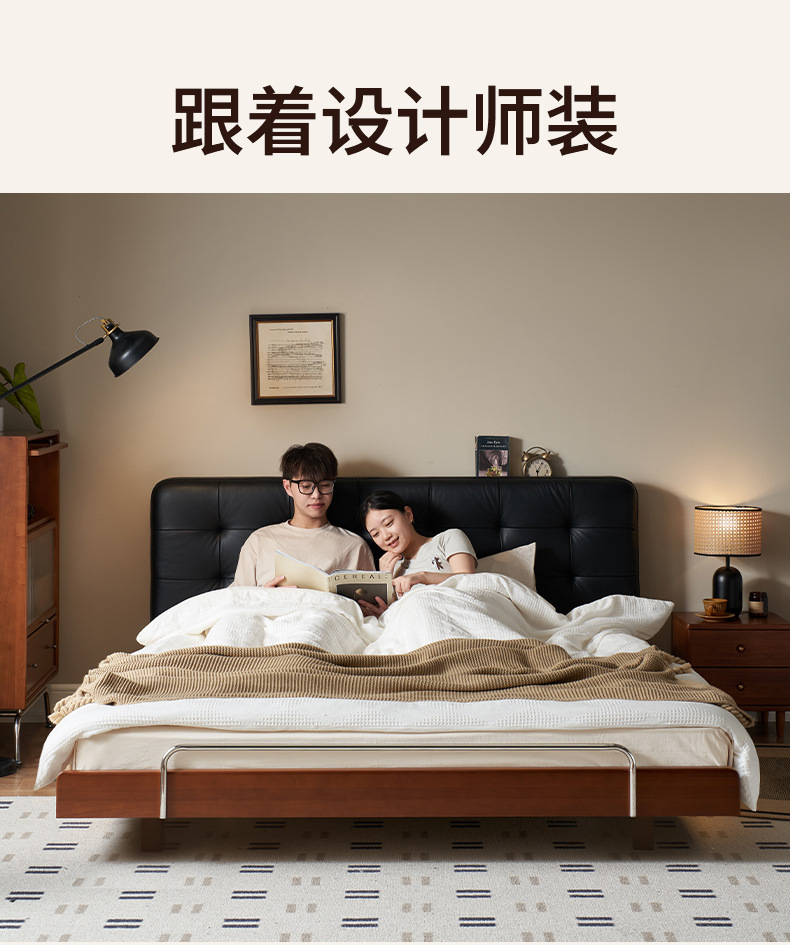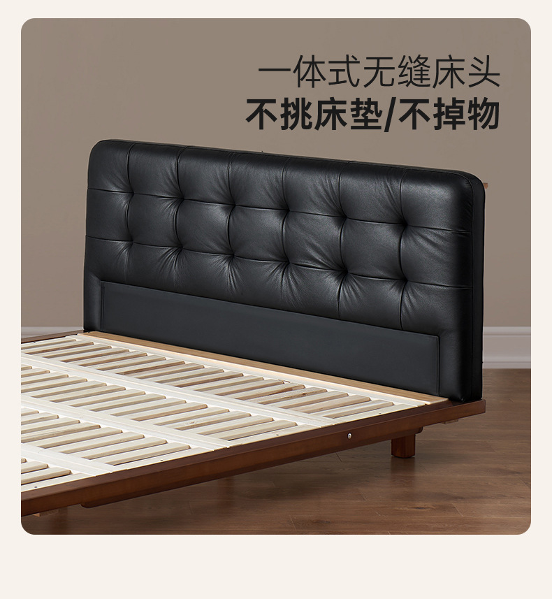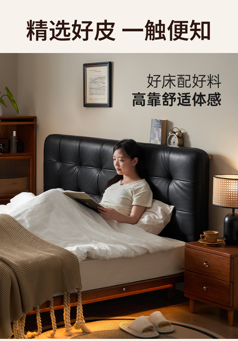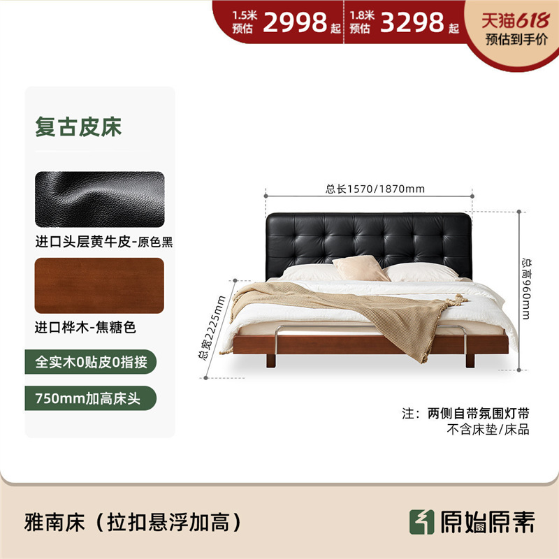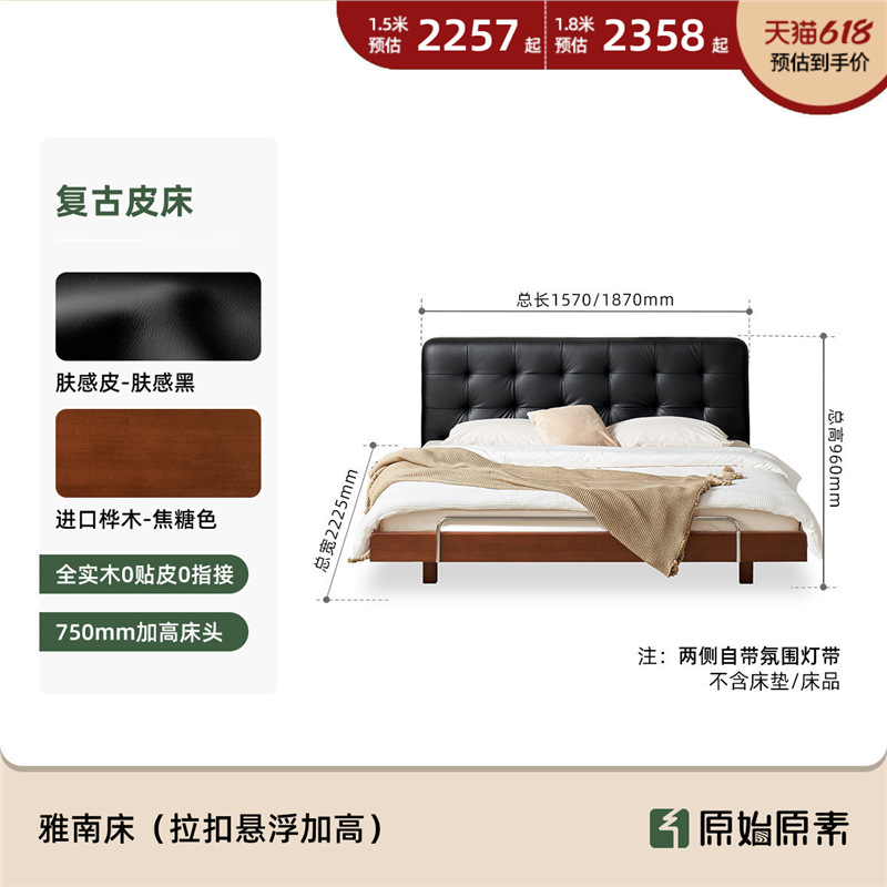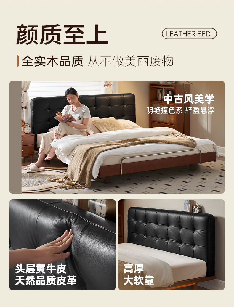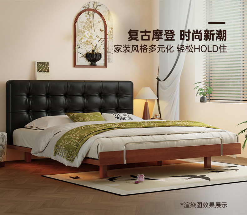 코사인 원목 침대 중세 스타일 블랙 가죽 서스펜션 침대 1.8 마스터 침실 더블 침대 와플 침대 N3017스토어 가기