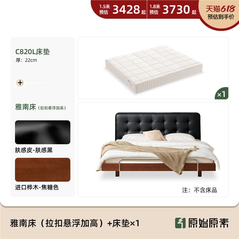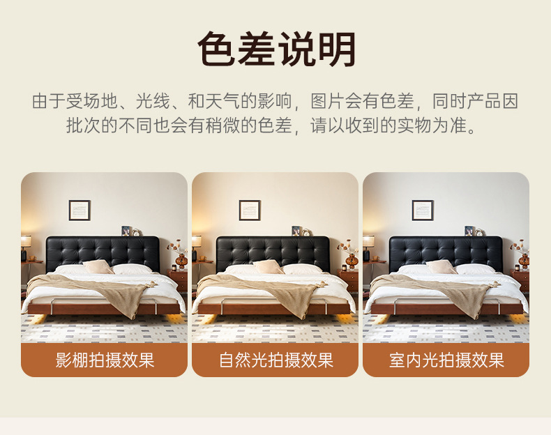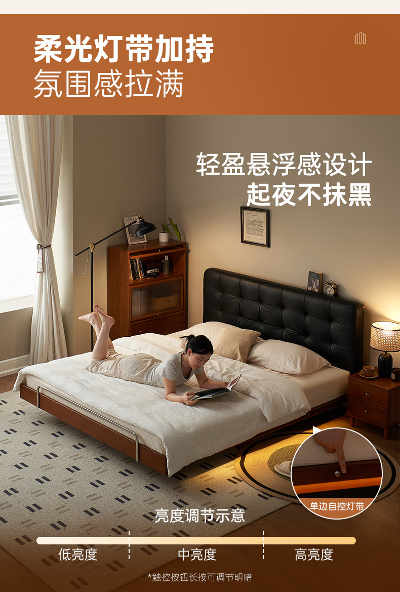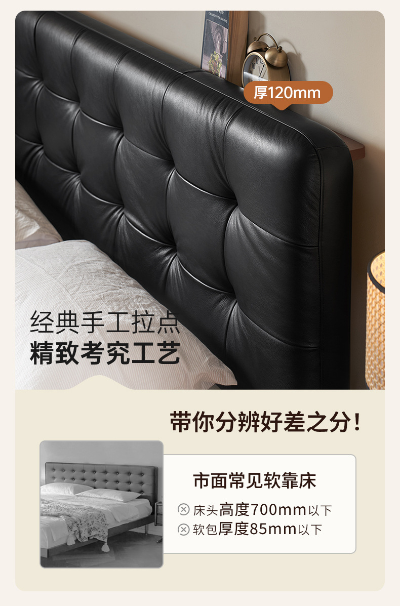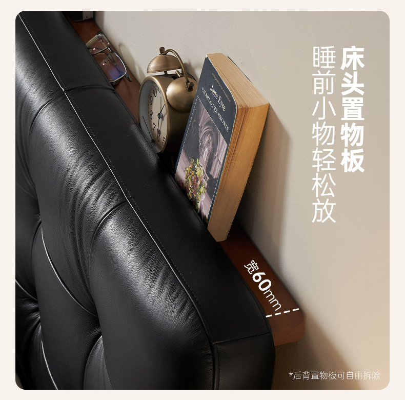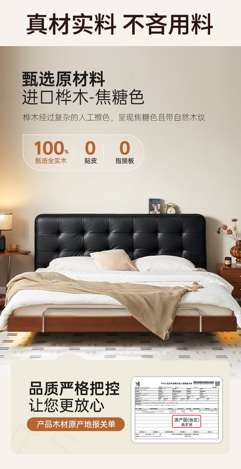 코사인 원목 침대 중세 스타일 블랙 가죽 서스펜션 침대 1.8 마스터 침실 더블 침대 와플 침대 N3017스토어 가기