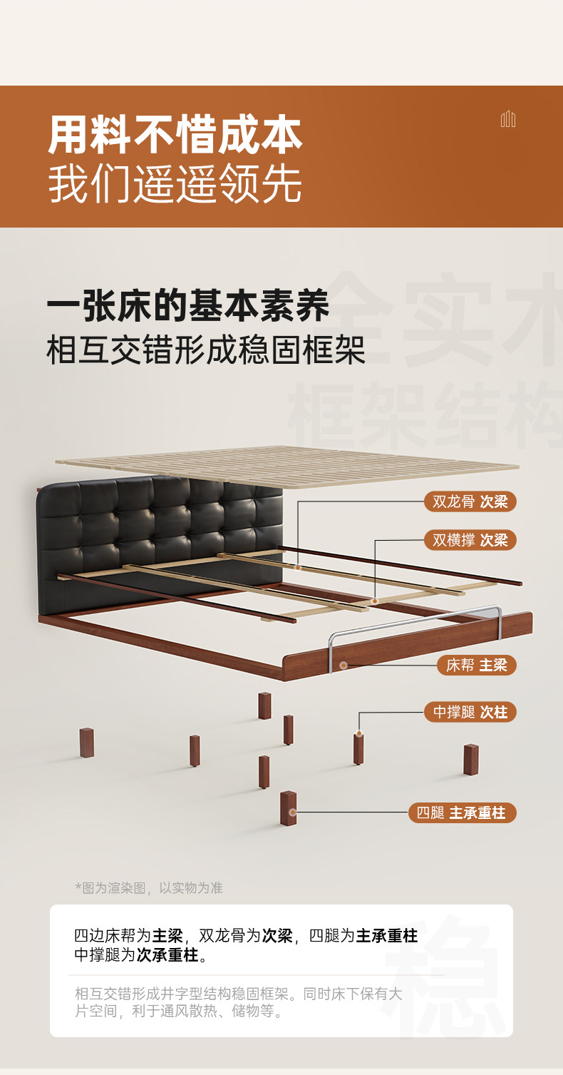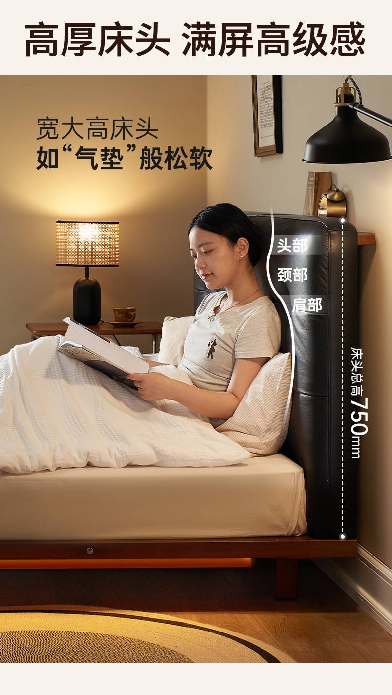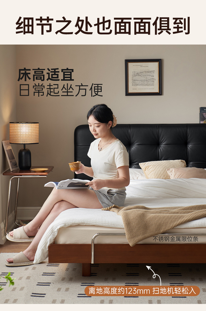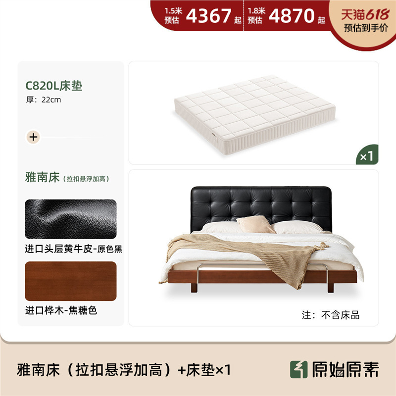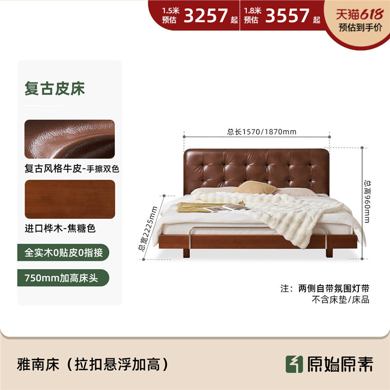 코사인 원목 침대 중세 스타일 블랙 가죽 서스펜션 침대 1.8 마스터 침실 더블 침대 와플 침대 N3017스토어 가기