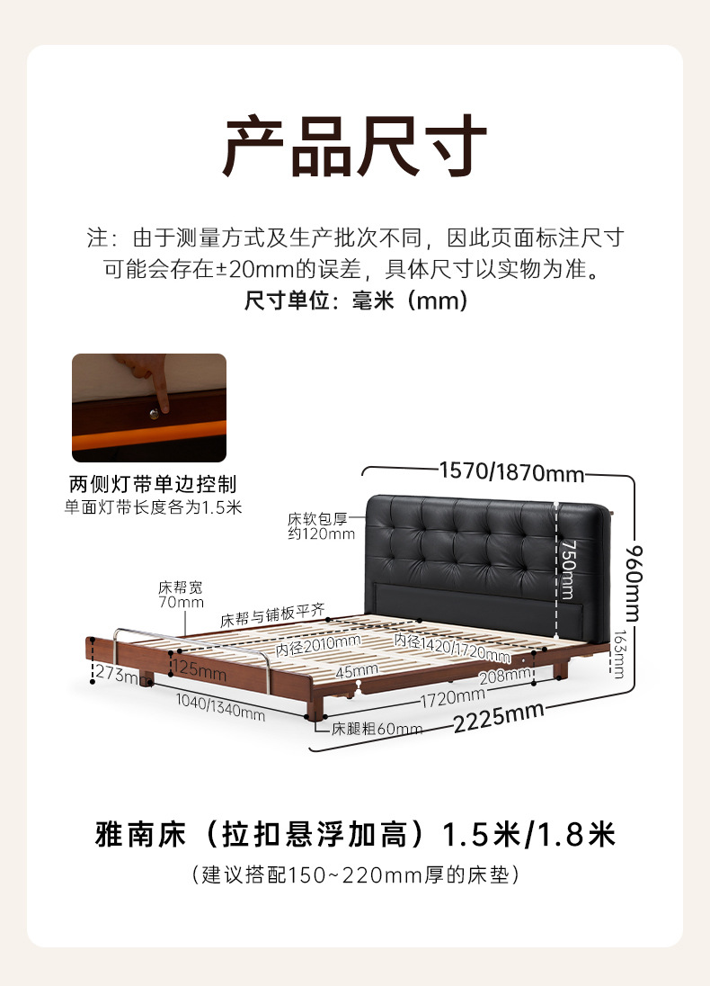 • [피부촉감-피부촉감 블랙] 침대+매트리스(두께22cm) C820L