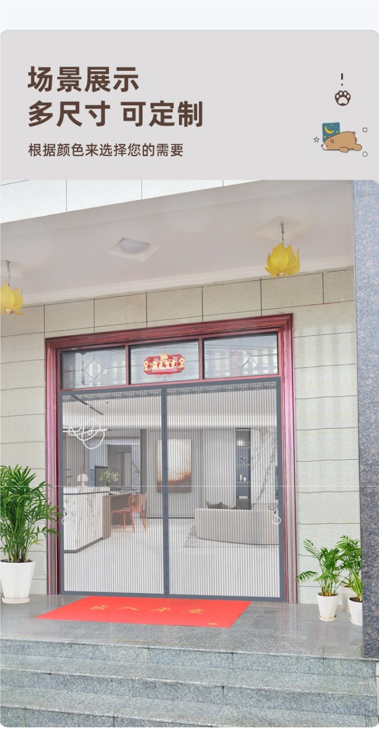 강철망 메쉬 도어, 펀치 없는 도어 커튼, 모기 방지 도어, 자석 모기장, 벨크로, 농촌 가정용 자체 접착식스토어 가기