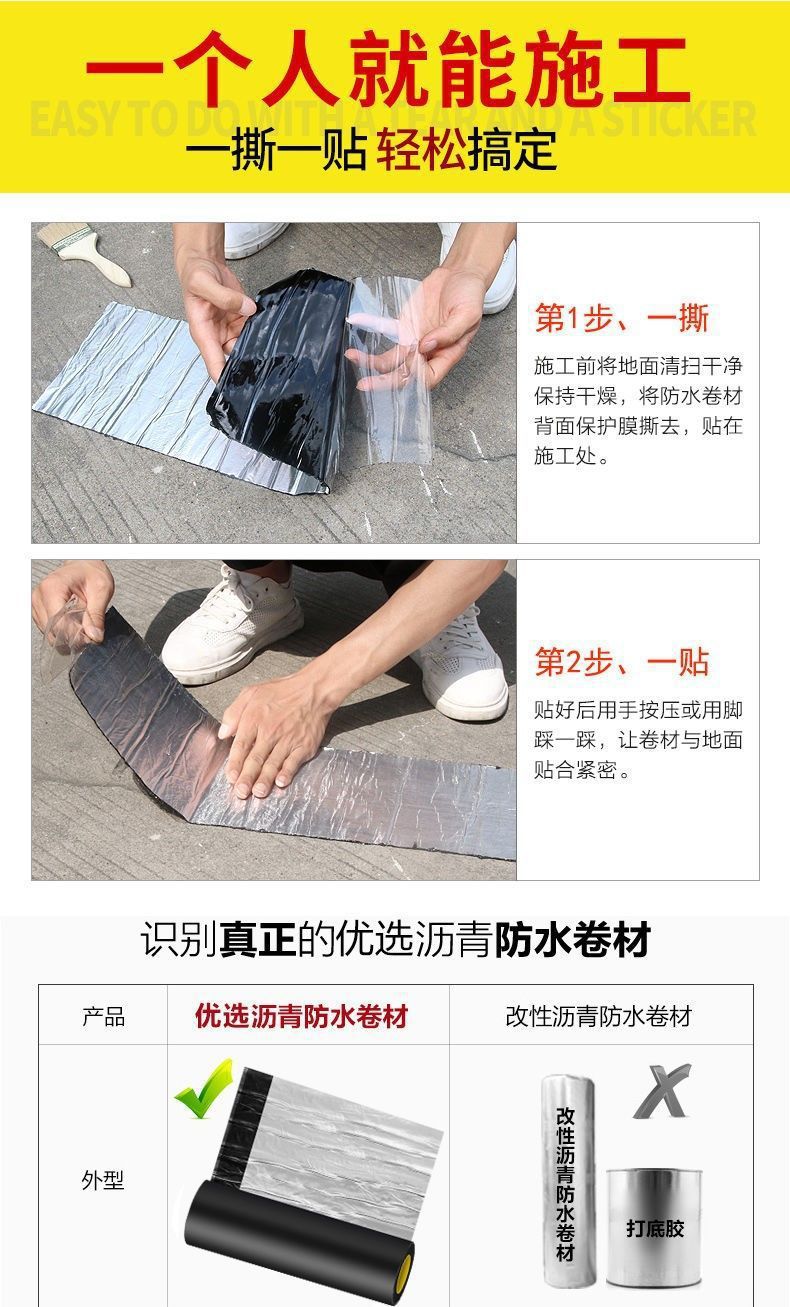 지붕 방수 및 누수 방지 재료 자체 접착식 아스팔트 방수 시트 욕실 오두막 균열 테이프 스티커 누수 방지 킹