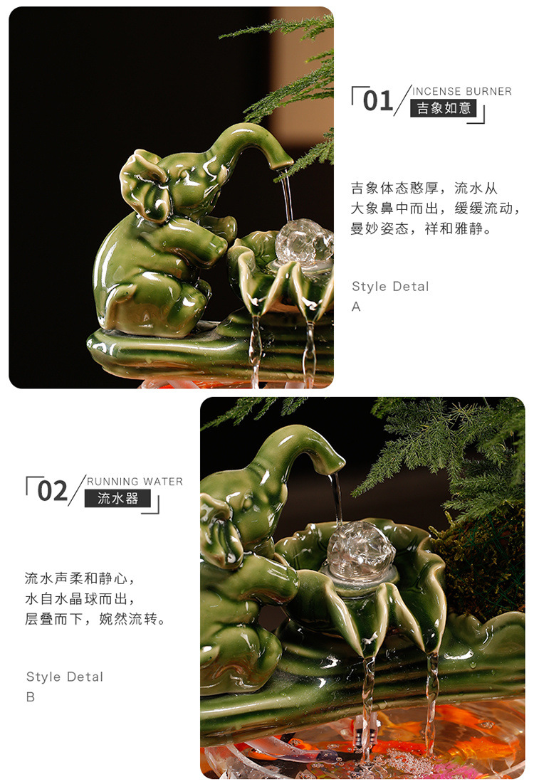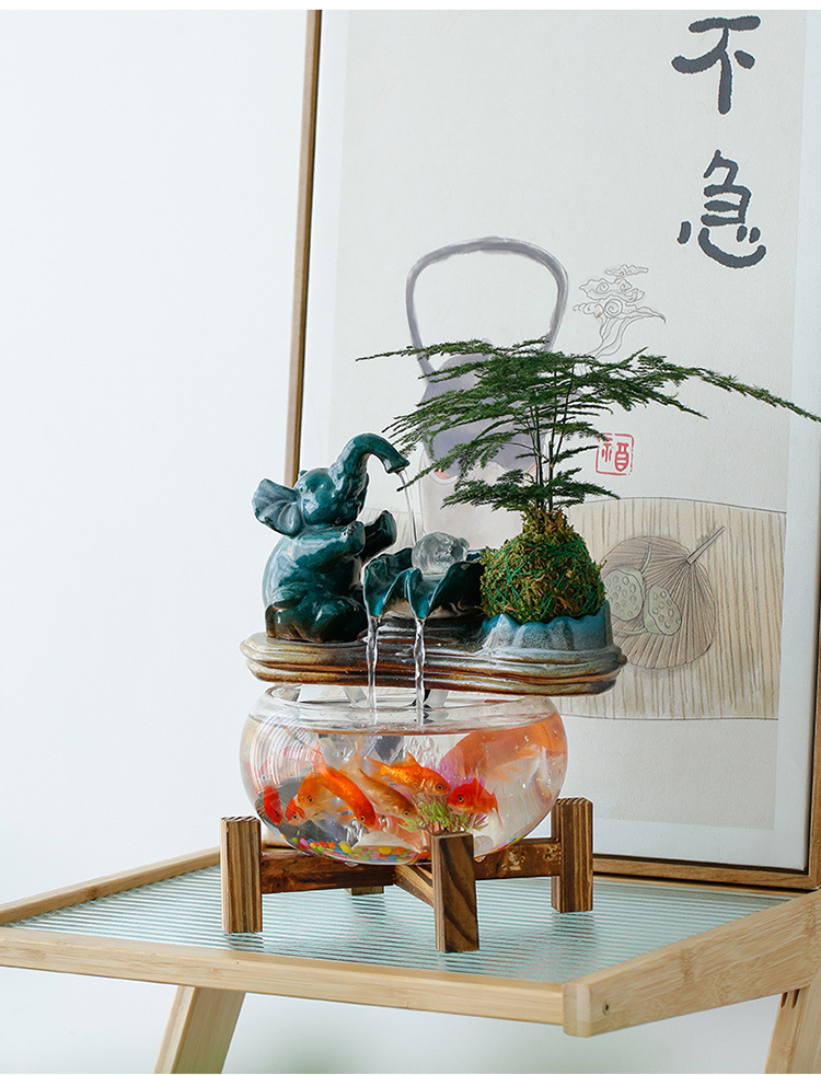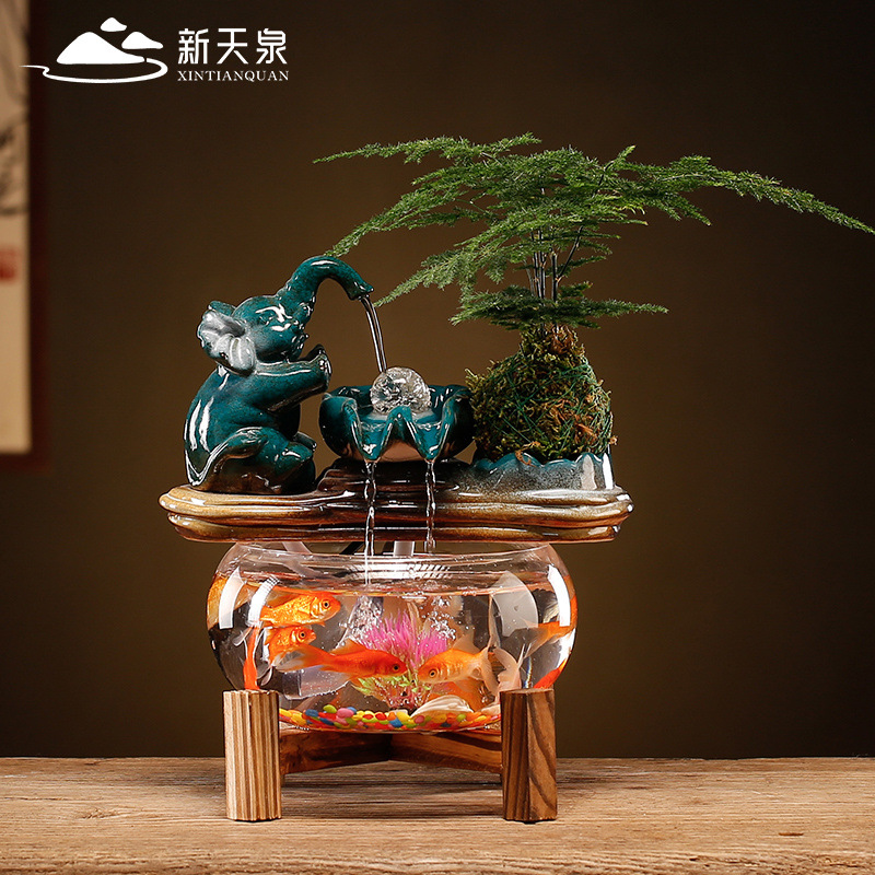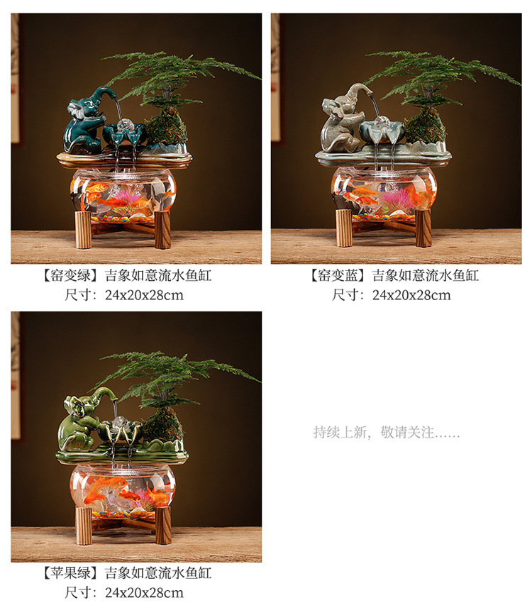 세라믹 창조적 인 흐르는 물 장식품 물 순환 부를 끌어들이는 고급 사무실 거실 수경 장식 데스크탑 분수 장식품
