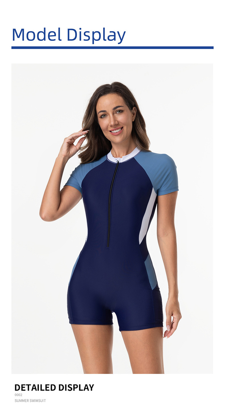 2025 유럽과 미국의 국경 간 새로운 원피스 수영복 여성 수영복 반팔 자외선 차단 경쟁 스포츠 서핑 슈트 잠수복스토어 가기