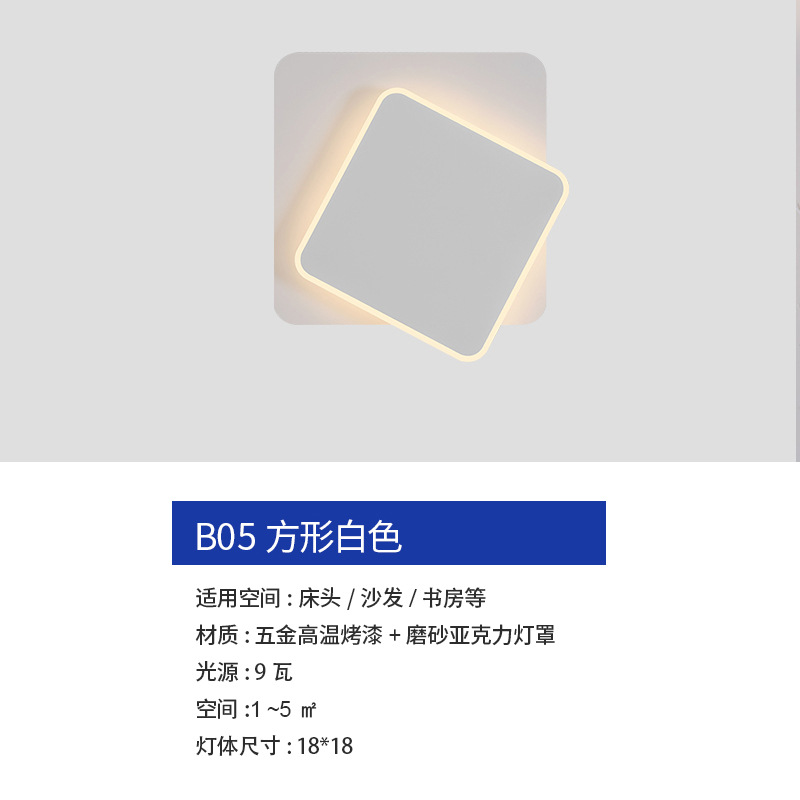 • B05-사각형 스타일-화이트-따뜻한 조명-벽 램프