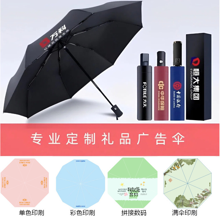로고가 인쇄된 골프 자동 우산, 긴 손잡이, 고급 방풍 비즈니스 선물 광고 우산 도매스토어 가기