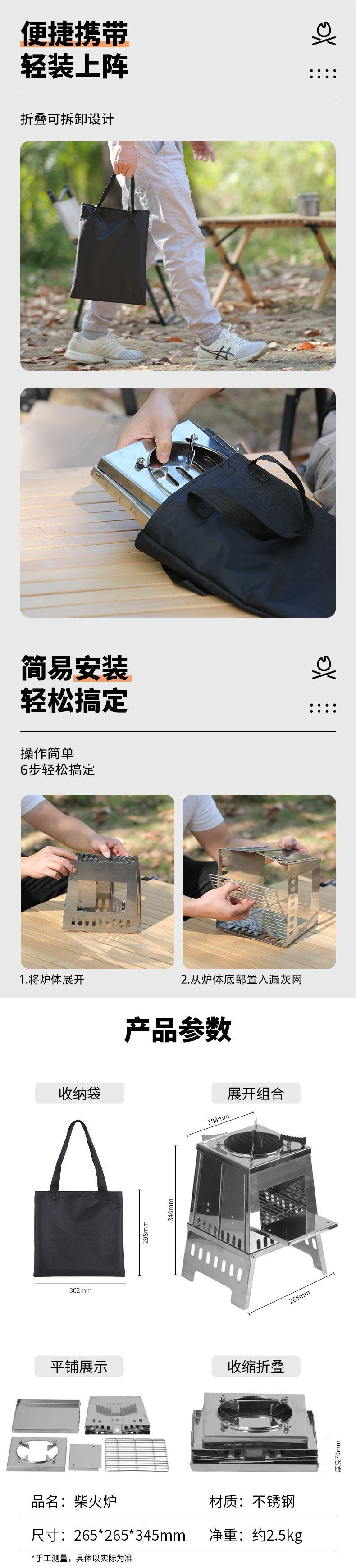 새로운 야외 편리한 캠핑 숯 장작 바베큐 그릴 바베큐 스테인레스 스틸 캠핑 접이식 스토브 접이식 스토브스토어 가기