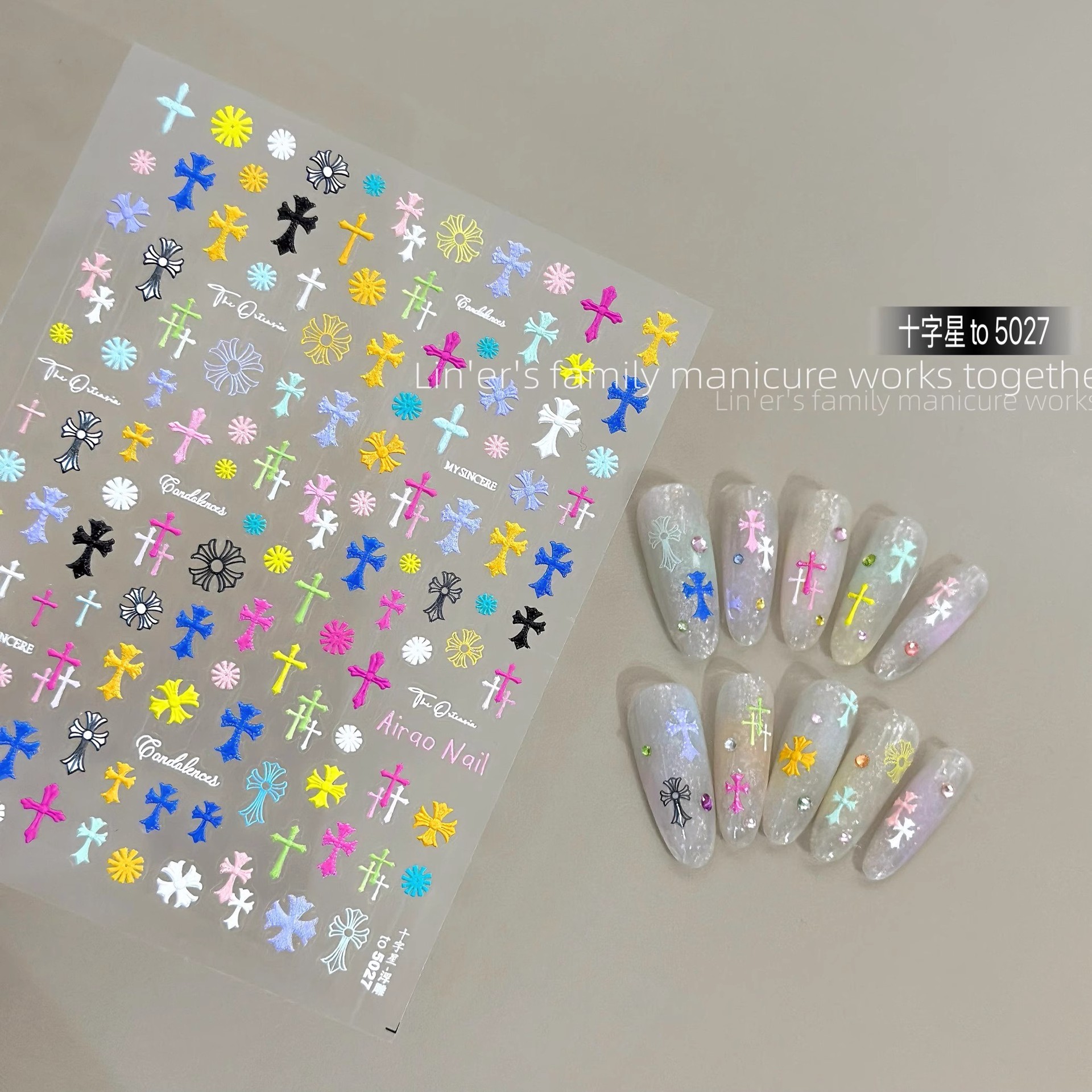 새로운 매니큐어 컬러 크로스 크로우 하트 핫 소녀 매니큐어 스티커 캔디 컬러 얇은 터프 릴리프 입체 장식 데칼