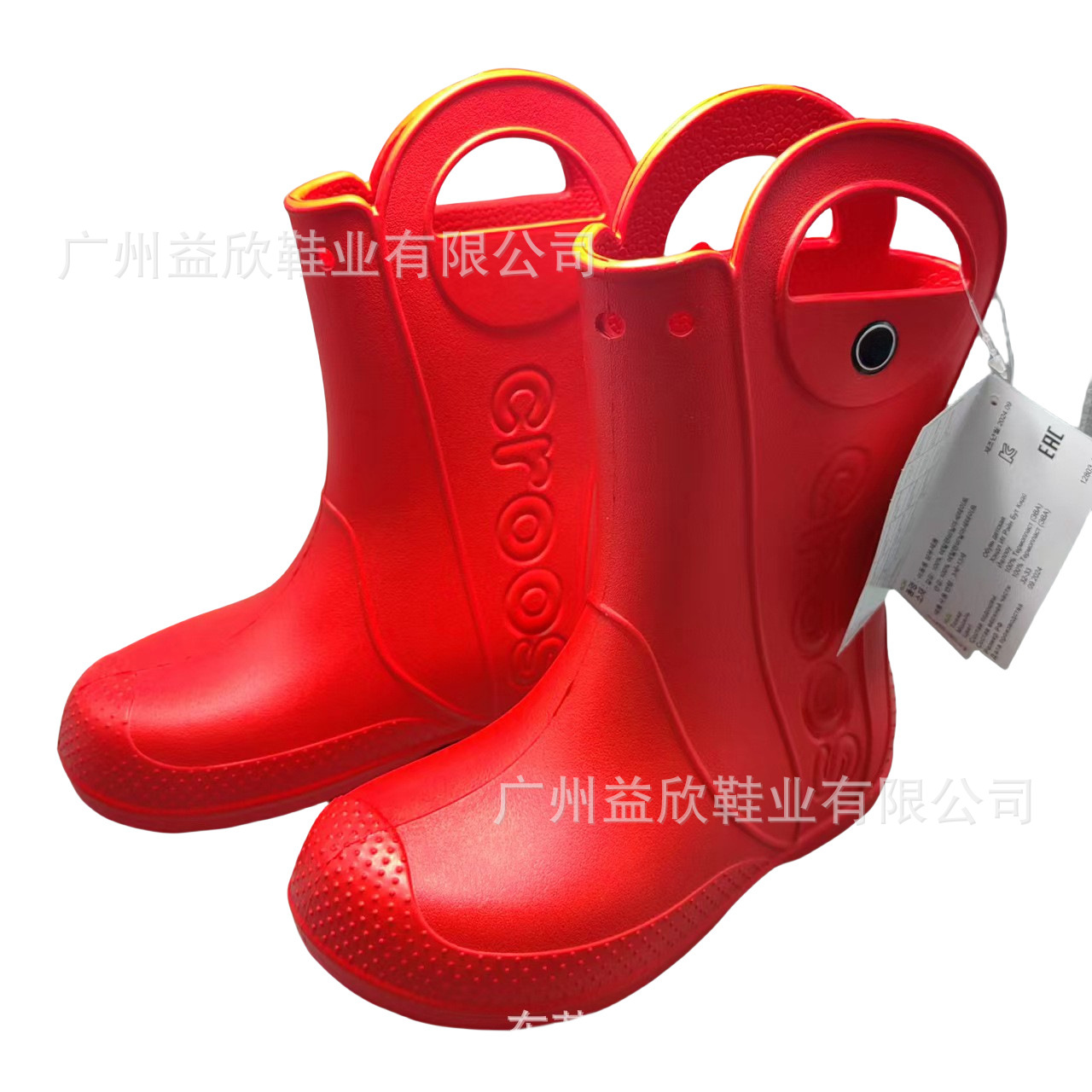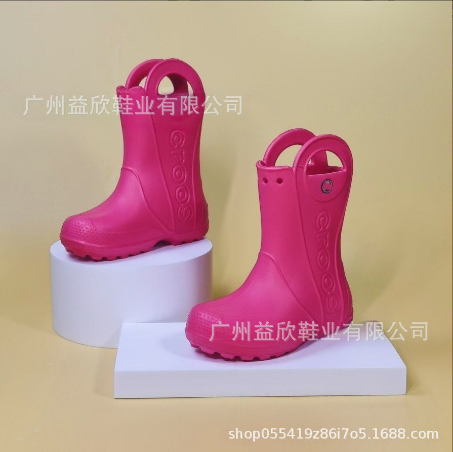 크로스 미드 튜브 어린이 나막신 장화 남성과 여성 봄, 여름, 가을 방수 신발 학생 인터넷 연예인 짧은 튜브 미끄럼 방지 장화스토어 가기