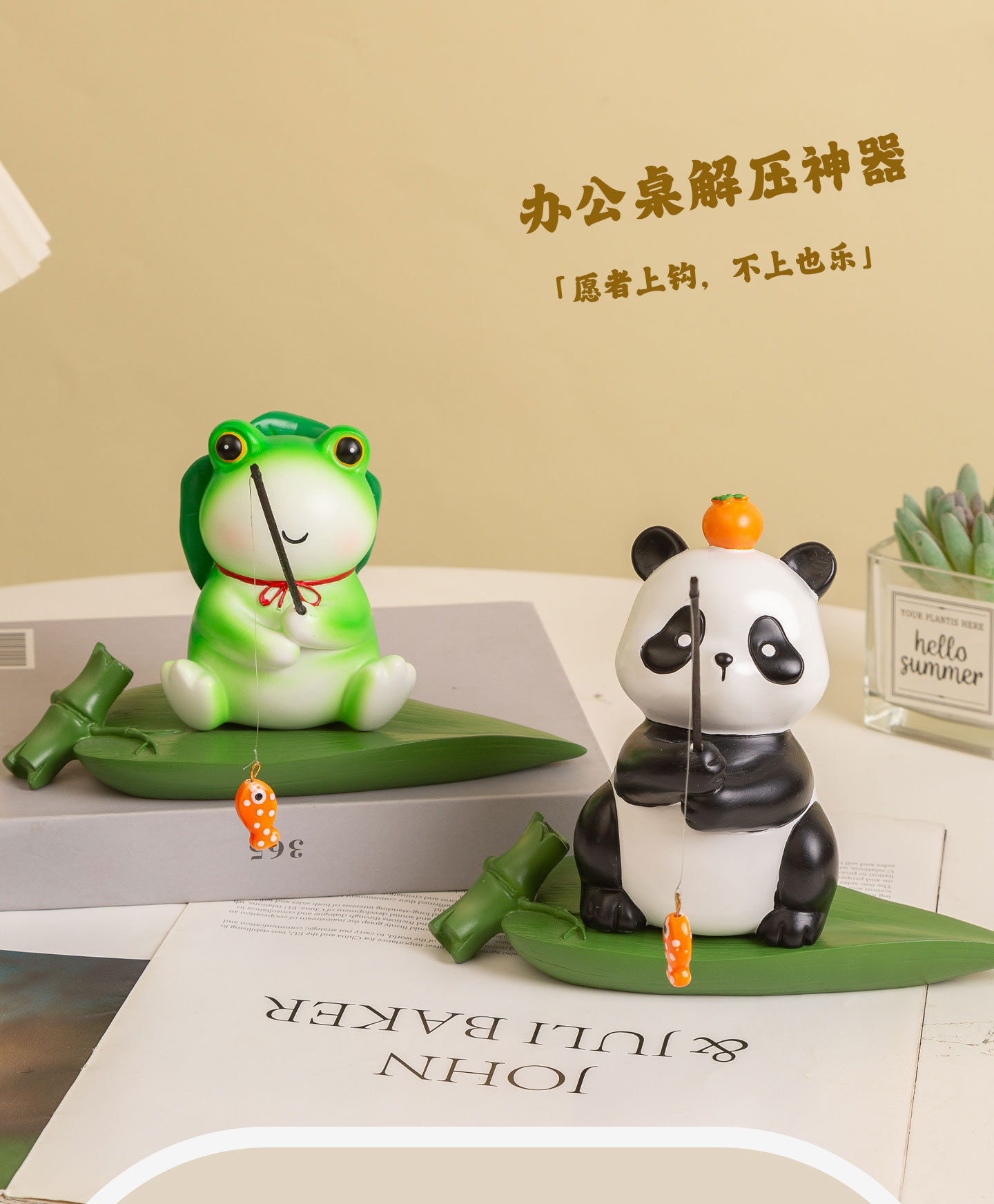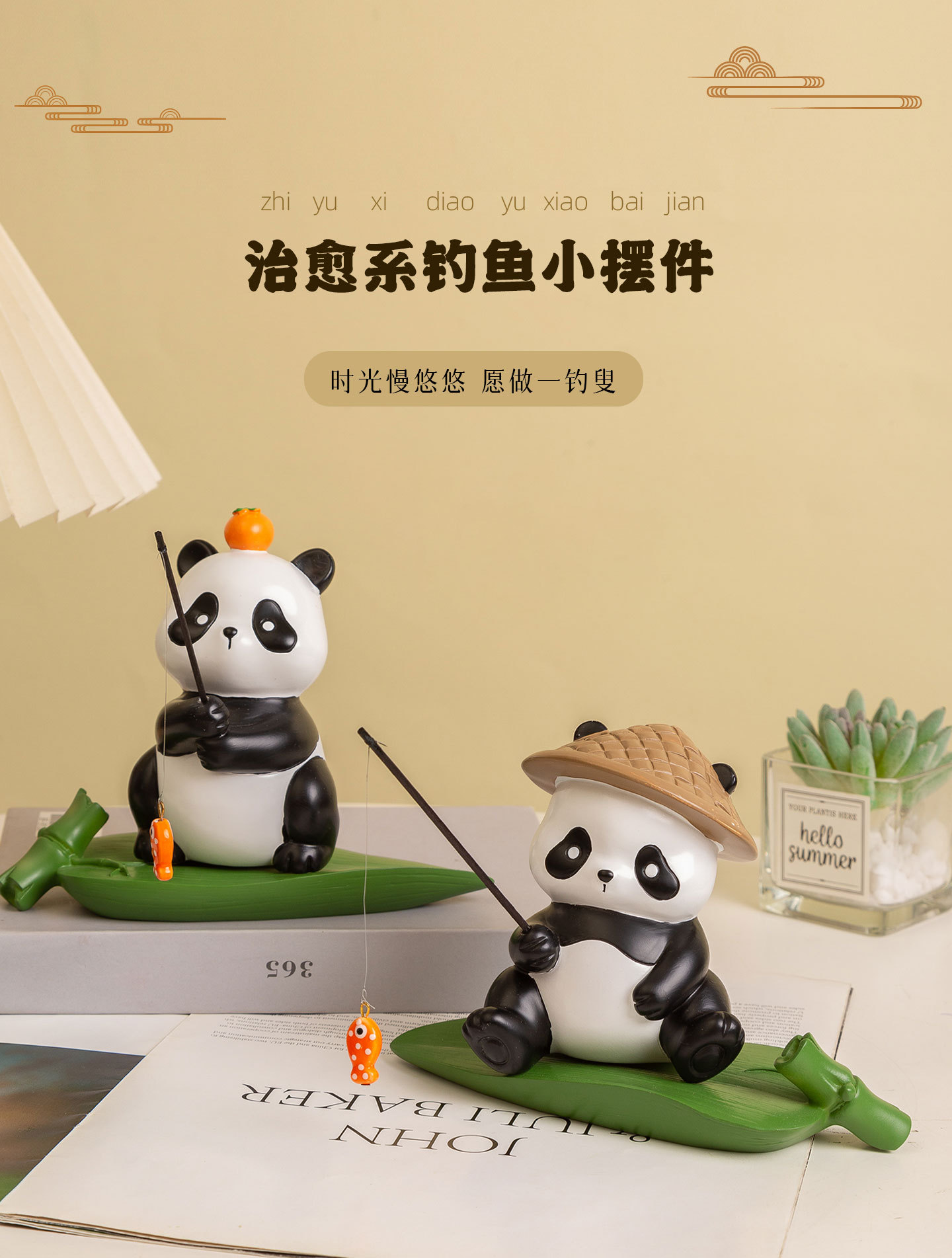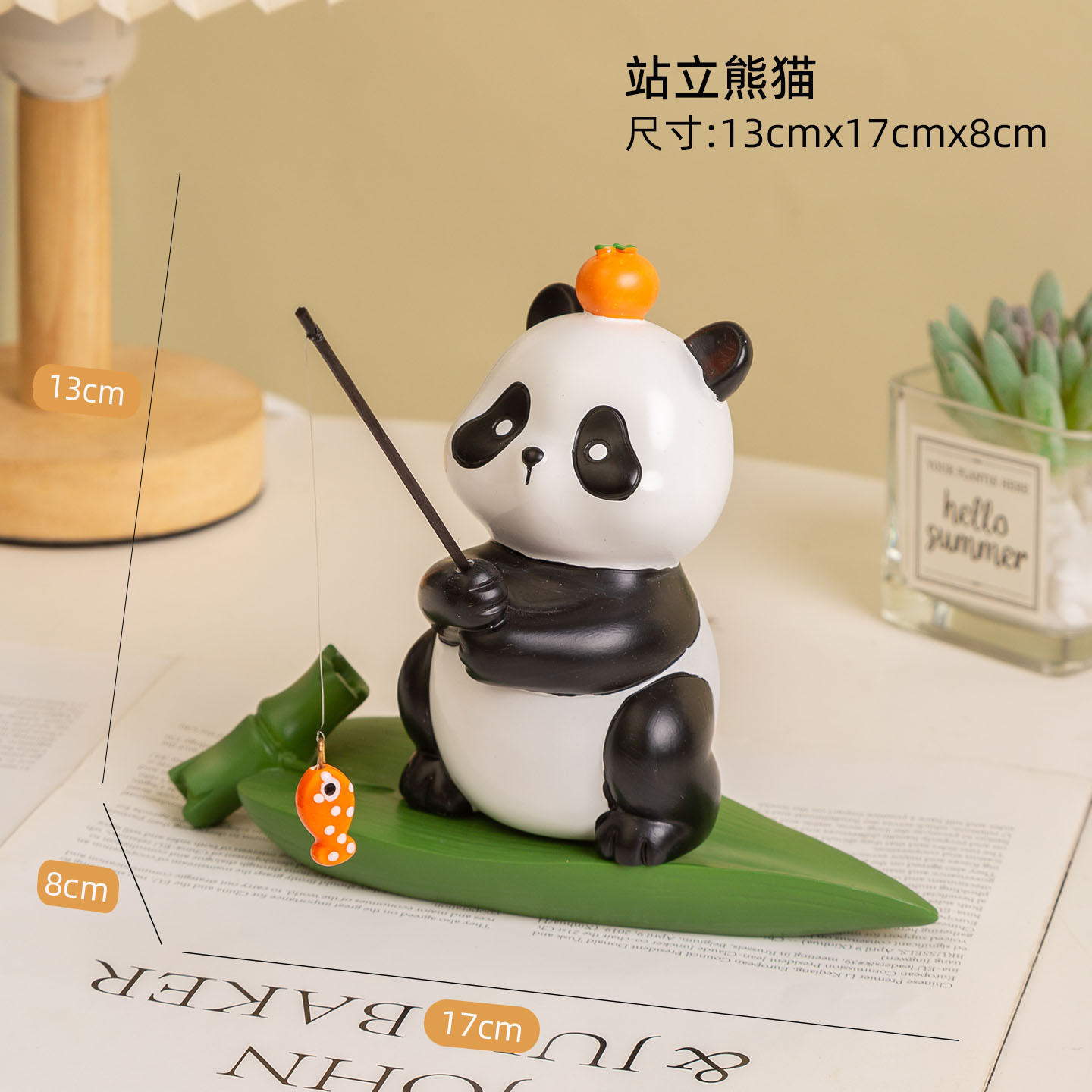 팬더 낚시 장식품 만화 귀여운 귀여운 자동차 데스크탑 홈 장식 유행 레진 수조 조경 공예품스토어 가기