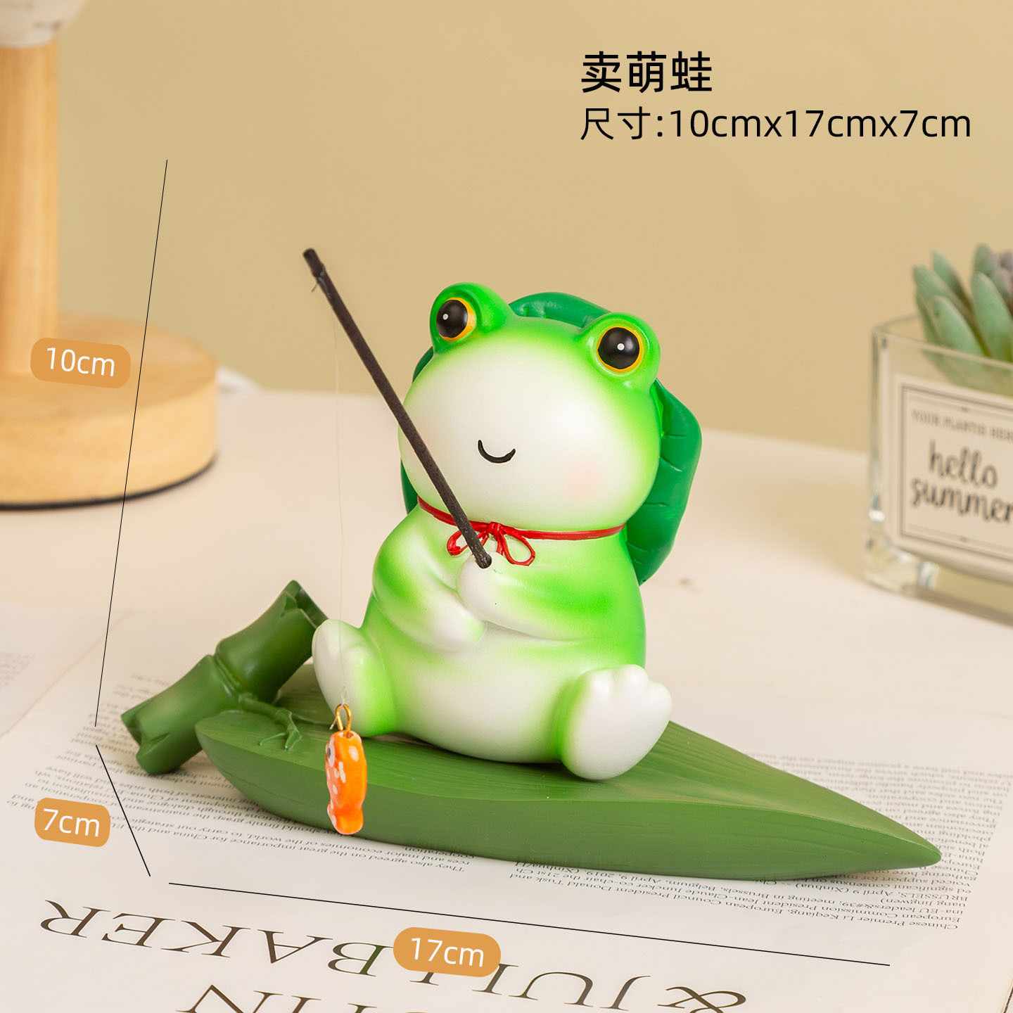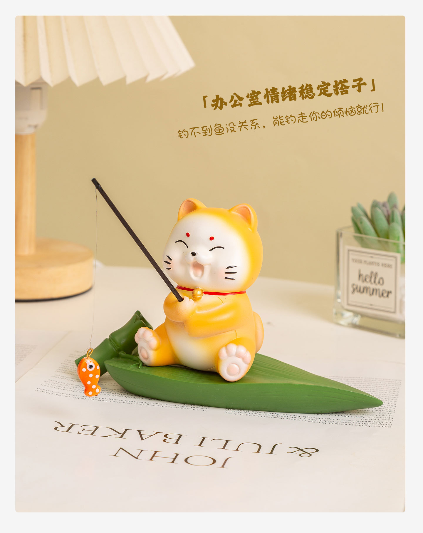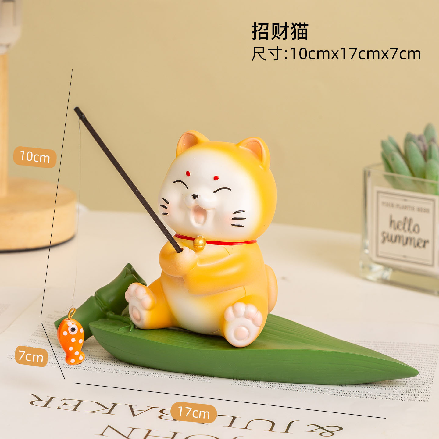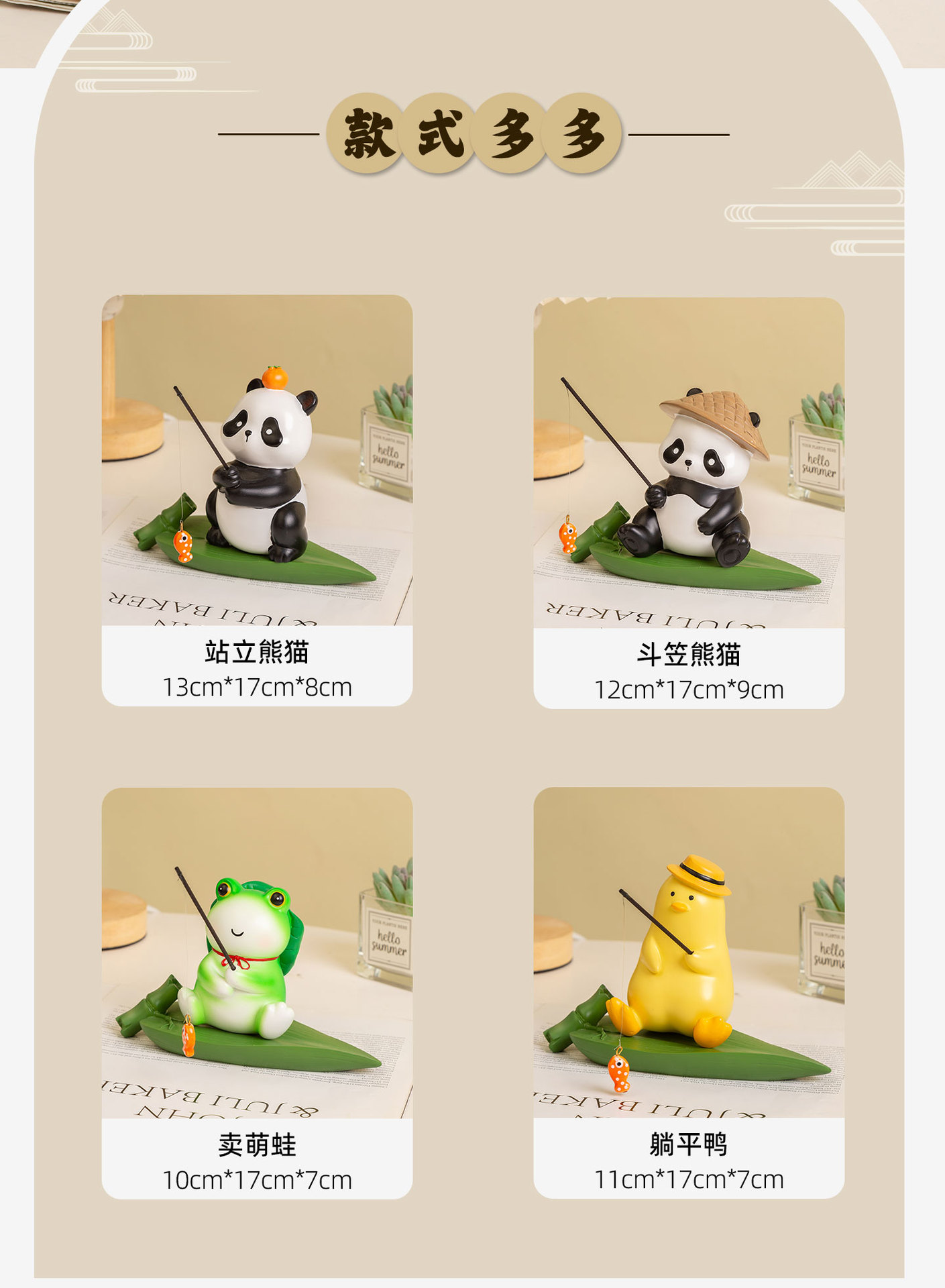 팬더 낚시 장식품 만화 귀여운 귀여운 자동차 데스크탑 홈 장식 유행 레진 수조 조경 공예품스토어 가기