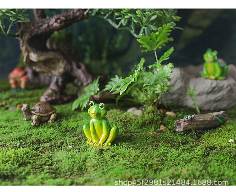 수지 개구리 장식품, 만화 창의적 미세 조경 화분, 시뮬레이션 동물 어항, 원예 이끼 장식