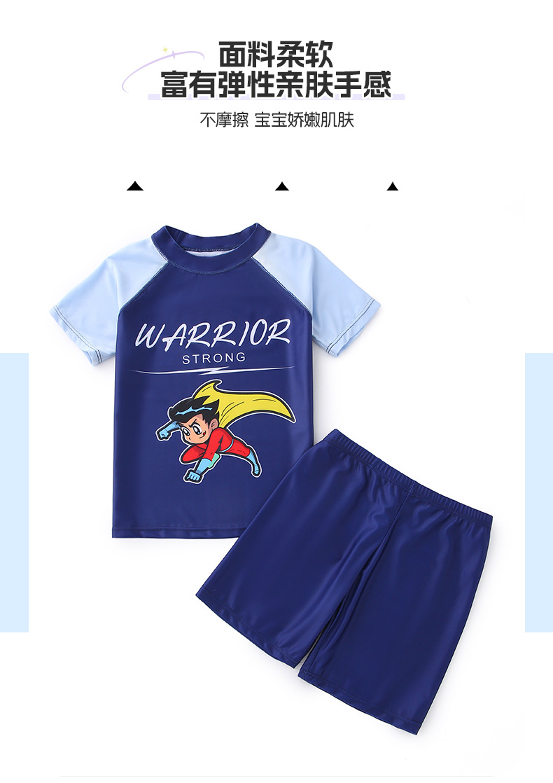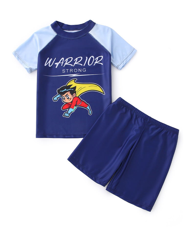 소년 만화 슈퍼맨 프린트 스플릿 수영복 세트 해변 해변 휴가 물 속 건조 라글란 슬리브 수영복