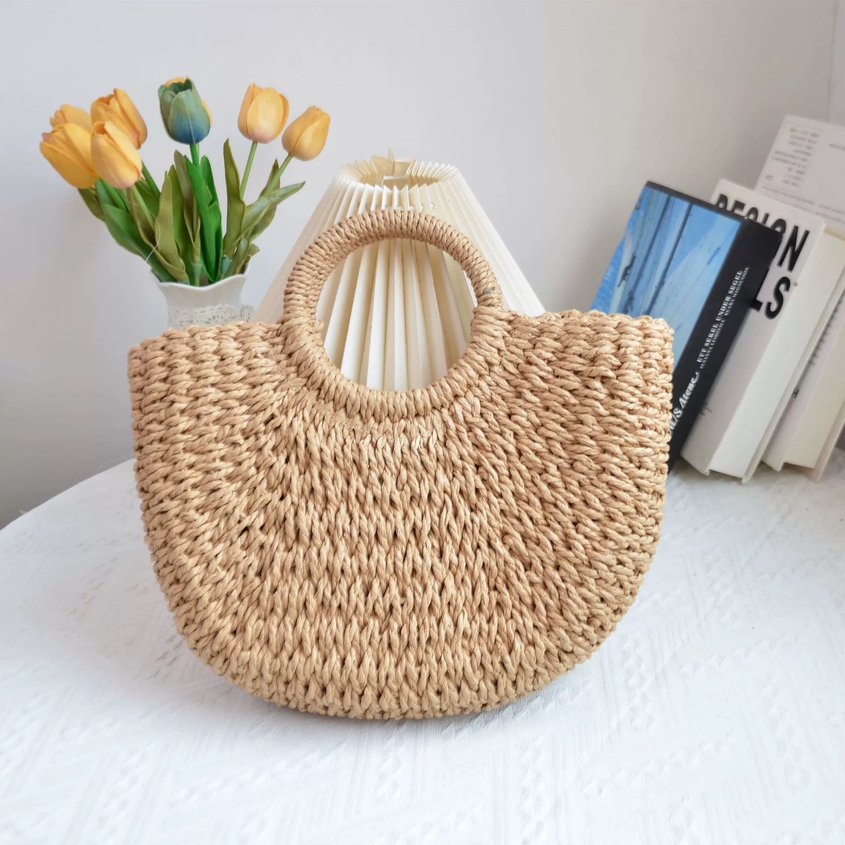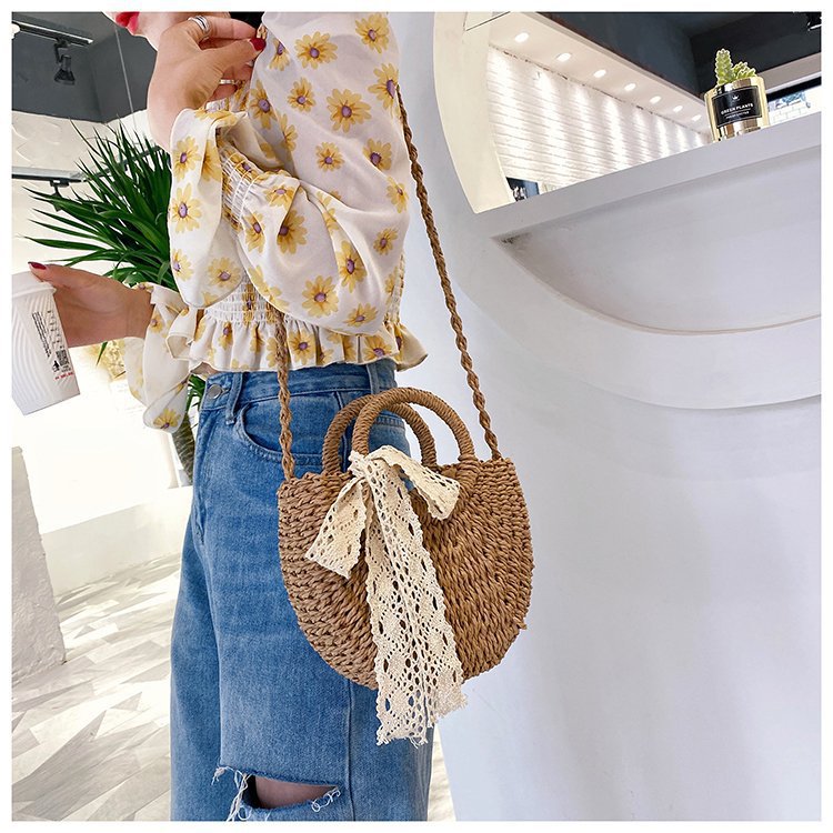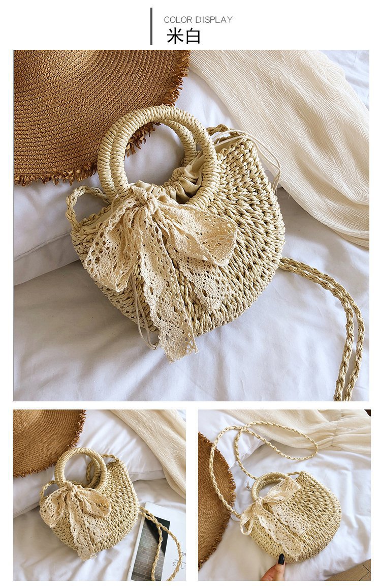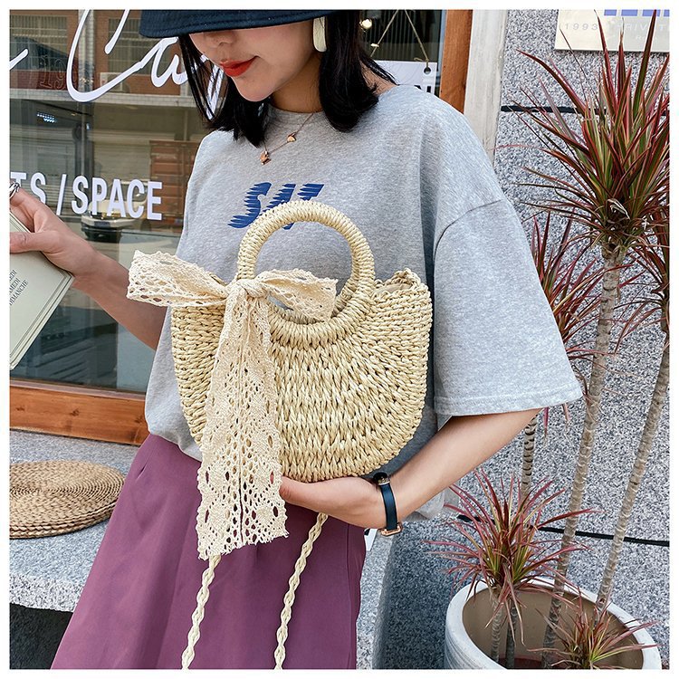 여름 밀짚 가방 휴가 핸드백 여성 나비 넥타이 실크 스카프 숄더 백 짠 해변 해변 크로스 바디 백 새로운 스타일스토어 가기