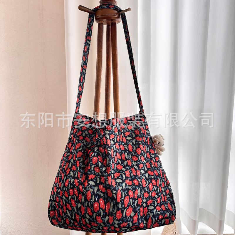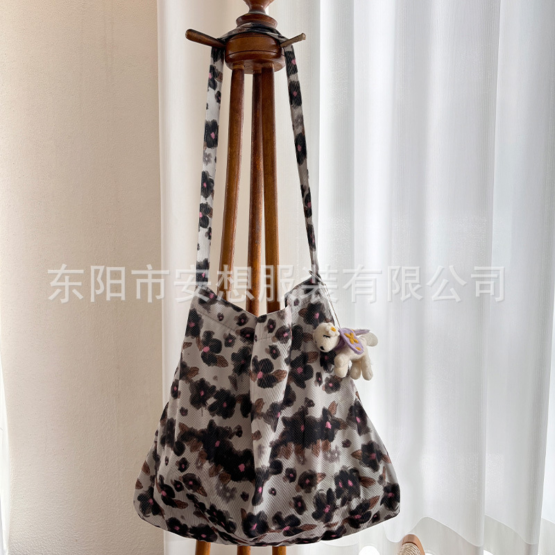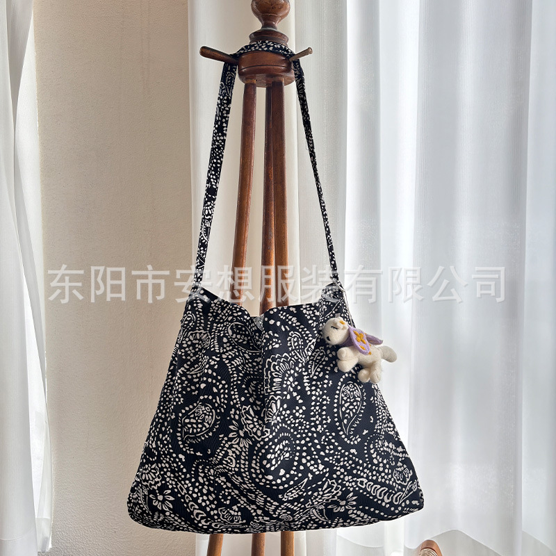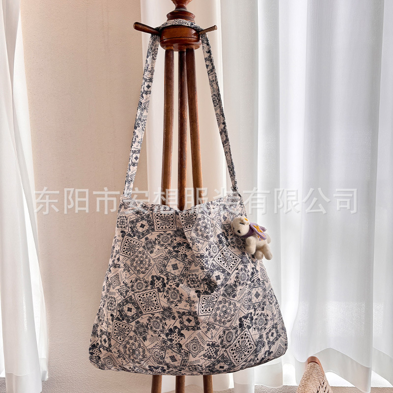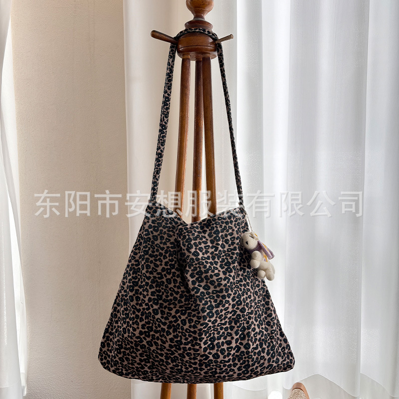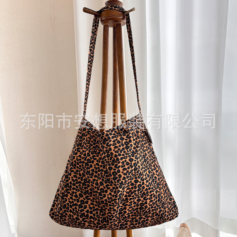 2025 새로운 한국어 스타일 패션 가방 복고풍 꽃 표범 인쇄 캔버스 가방 여성 학생 휴대용 크로스 바디 토트 백 유행스토어 가기