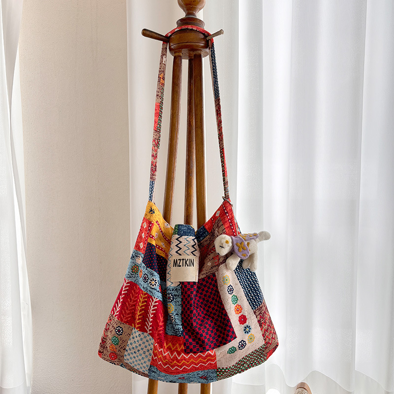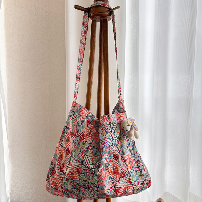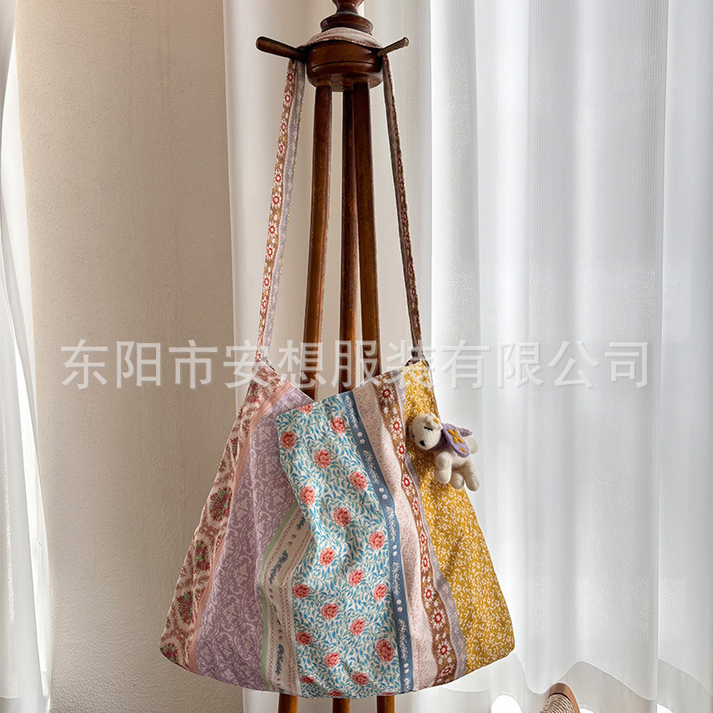 2025 새로운 한국어 스타일 패션 가방 복고풍 꽃 표범 인쇄 캔버스 가방 여성 학생 휴대용 크로스 바디 토트 백 유행