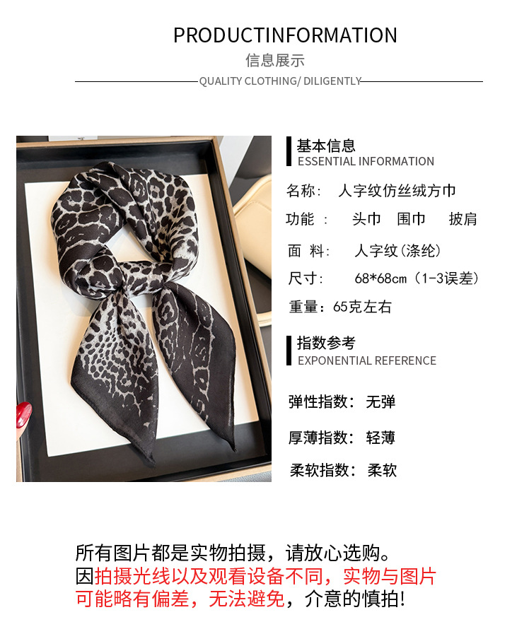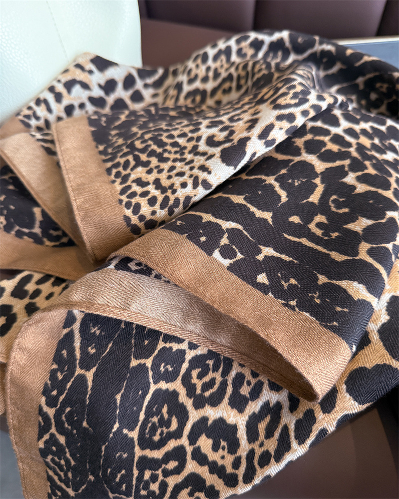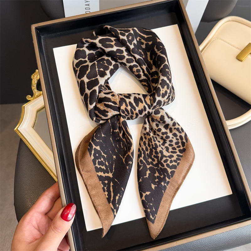 패션 레오파드 프린트 헤링본 코튼과 린넨 느낌의 작은 사각형 스카프 모조 벨벳 스카프 숄 자외선 차단제 스카프 여성용 스카프스토어 가기