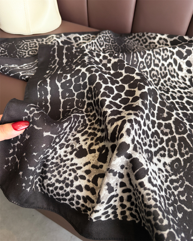 패션 레오파드 프린트 헤링본 코튼과 린넨 느낌의 작은 사각형 스카프 모조 벨벳 스카프 숄 자외선 차단제 스카프 여성용 스카프